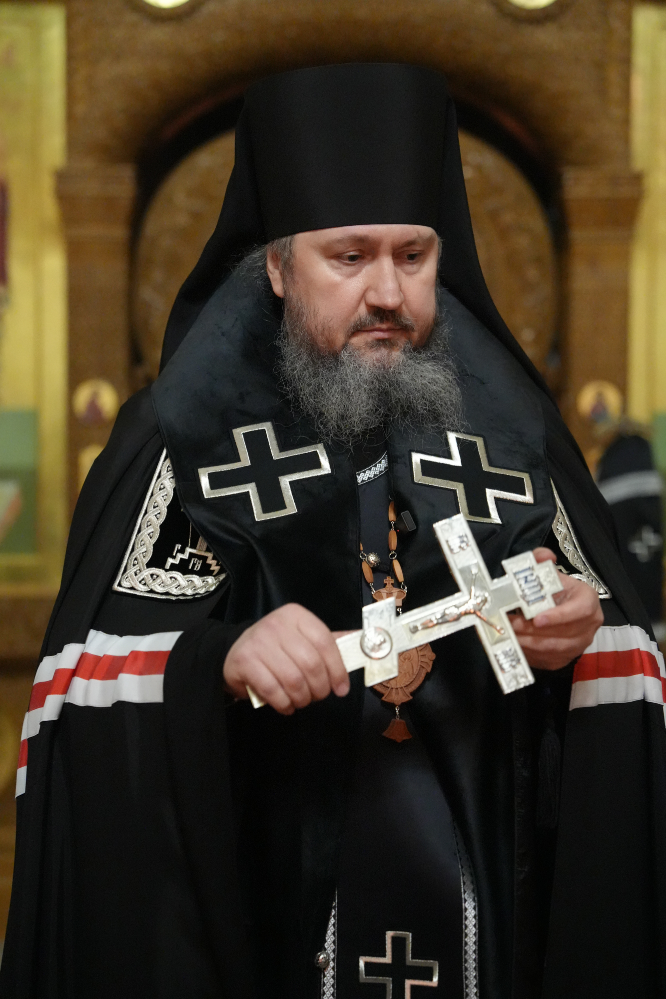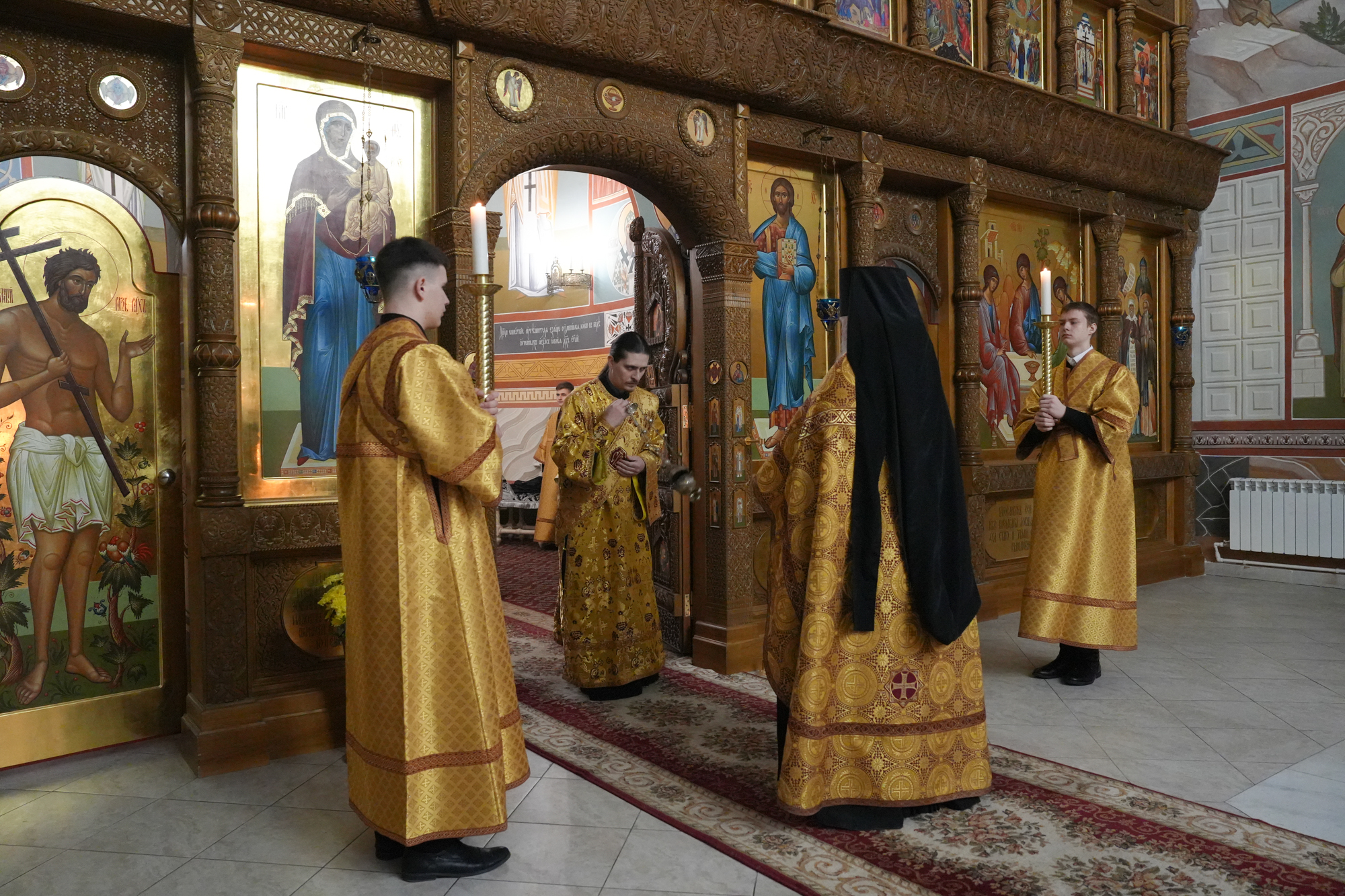 Его Преосвященству сослужили благочинный Троицкого округа, настоятель собора архимандрит Амвросий (Волков), клирик собора диакон Тимофей Улямаев, клирик храма Рождества Христова г. Балаково диакон Михаил Дутка.