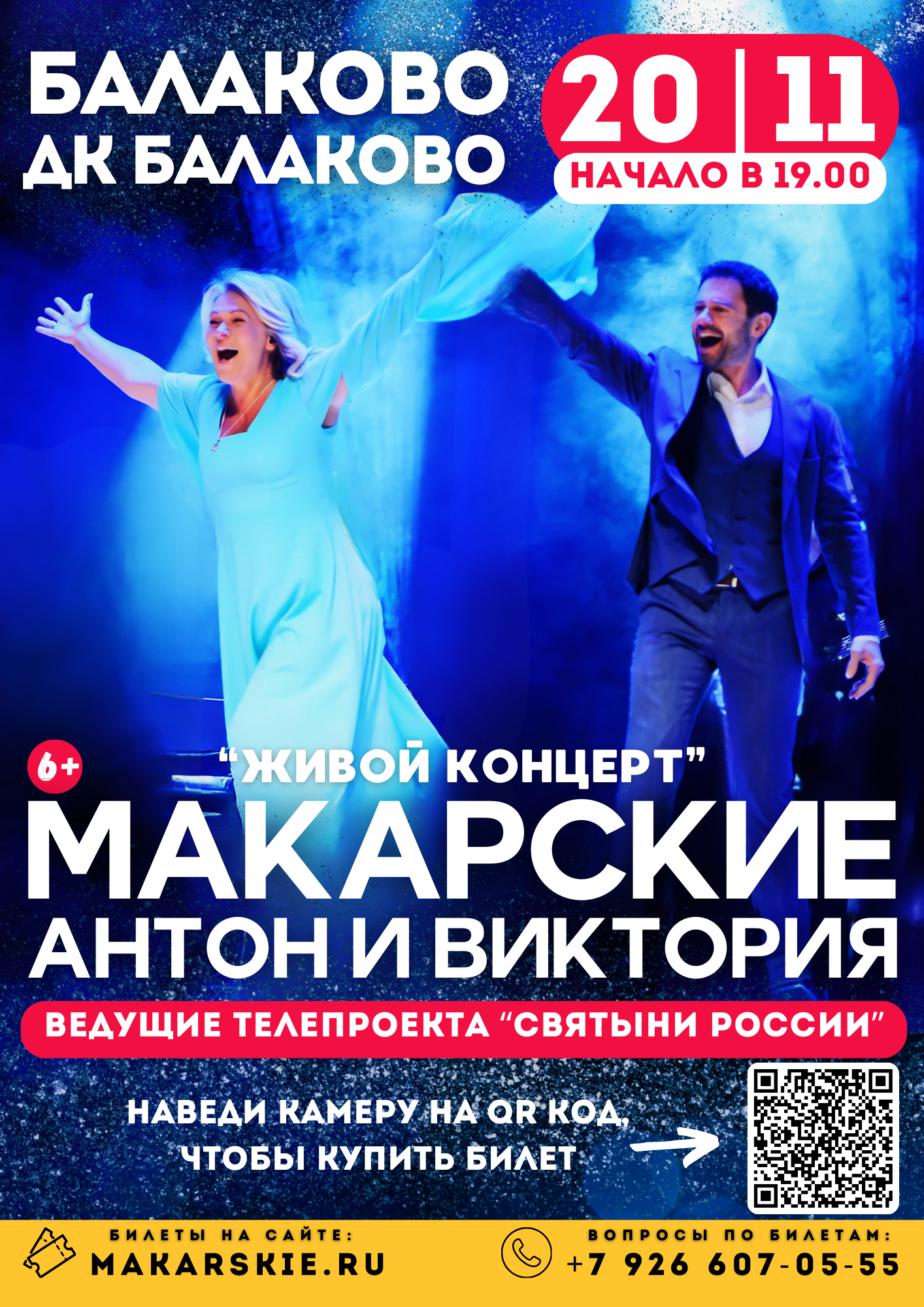 20 ноября в 19:00 во Дворце Культуры г. Балаково (улица Набережная Леонова, 1А) состоится «Живой концерт» Антона и Виктории Макарских.