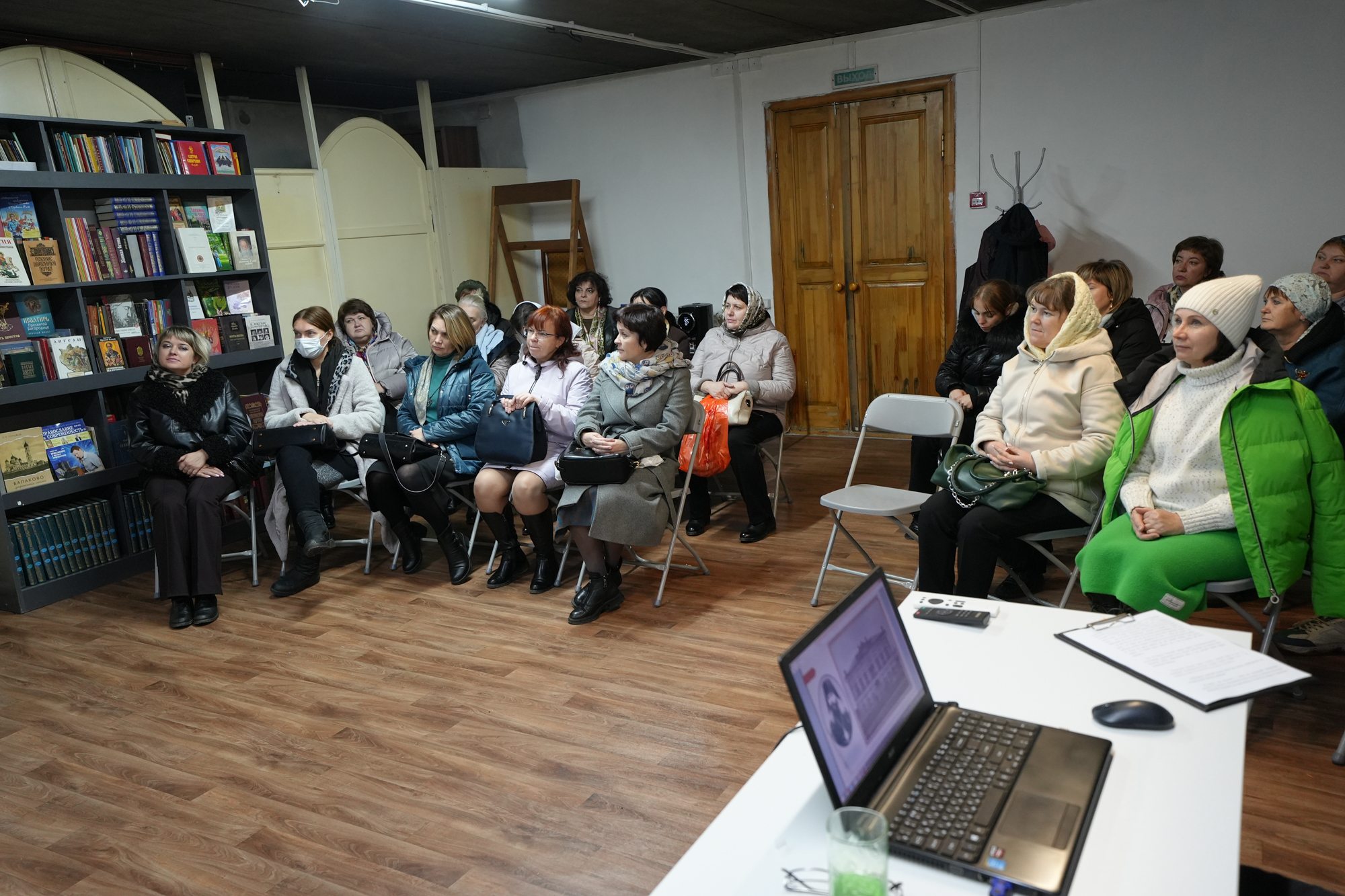 Далее состоялась гостиная, посвящённая церковному пению, которая в себя включала две части. В первой части встречи заместитель руководителя Паломнической службы Балаковской епархии по экскурсионно-краеведческой работе Павел Константинович Соловьёв рассказал о второклассной женской учительской школе г. Балаково, а также об основании села Балаково, Христорождественском храме, о священнике Константине Введенском, о первом концерте И. Я. Паницкого во второклассной школе. Лектор подробно рассказал о музыкальном певческом репертуаре воспитанниц школы, в частности, к 100-летию Отечественной войны (1912 г.), представил гостям фотографии учительской школы.