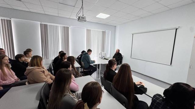 13 февраля, в преддверии праздника Сретения Господня, в Ивантеевском техникуме агропромышленных технологий и управления состоялась просветительская встреча студентов с клириком Свято-Воскресенского собора г. Пугачева диаконом Сергием Тихоновым. Главной темой беседы стала история встречи святого старца Симеона с Богомладенцем на пороге Иерусалимского храма.