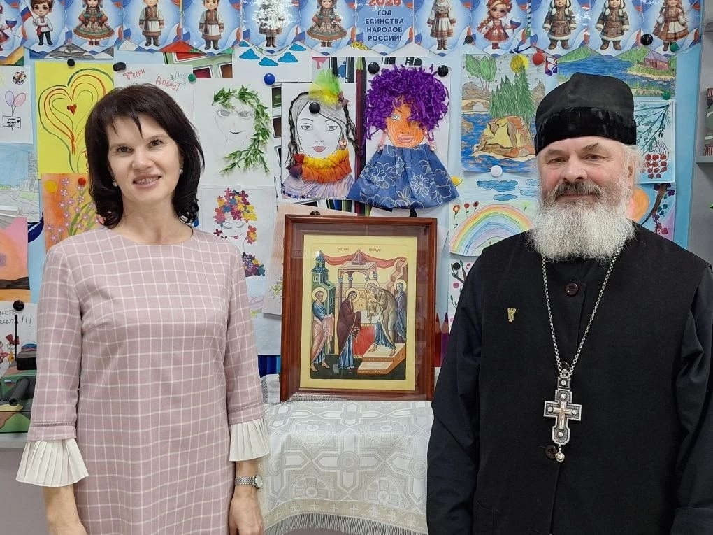 Директор школы Наталья Анатольевна Ларина поблагодарила отца Валерия и артистов за встречу и вручила воспитанникам воскресной школы сладкие подарки.