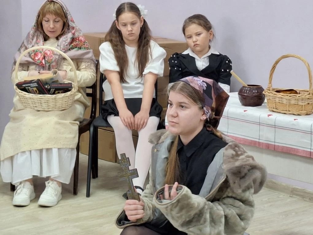 Воспитанники воскресной школы показали спектакль «Сиротка» о пути девочки-сироты, которая, пройдя через тяжелые испытания, обрела дом и семью благодаря вере в Бога. Повзрослев, героиня открывает приют, чтобы помочь другим сиротам тоже найти свое счастье.