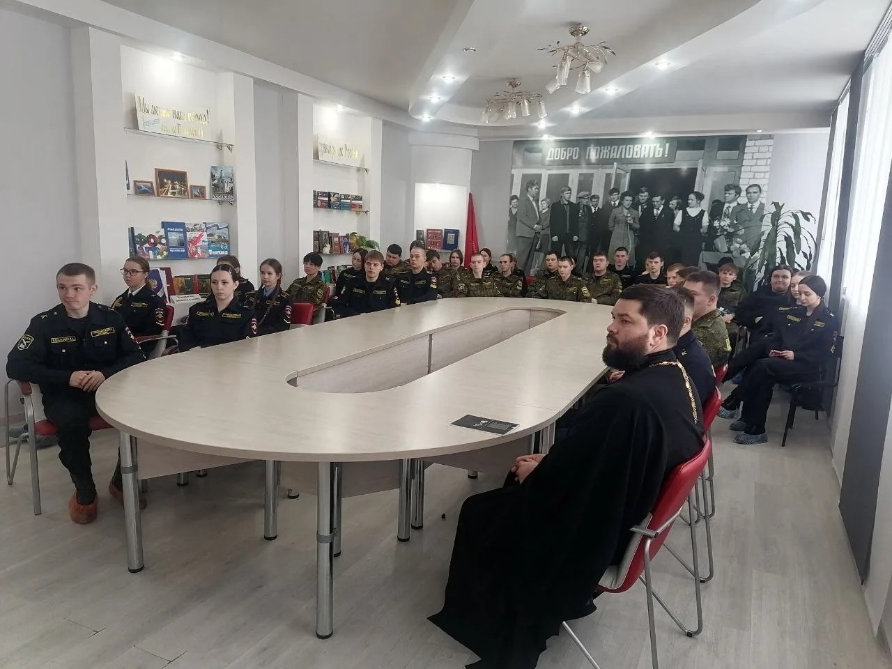 Священник поздравил кадетов с праздником Сретения Господня и напомнил о значении этого события для православного человека. Ребята узнали о том, что 15 февраля отмечается День православной молодёжи, который был установлен в России в 2002 году по благословению Патриарха Московского и всея Руси Алексия II.