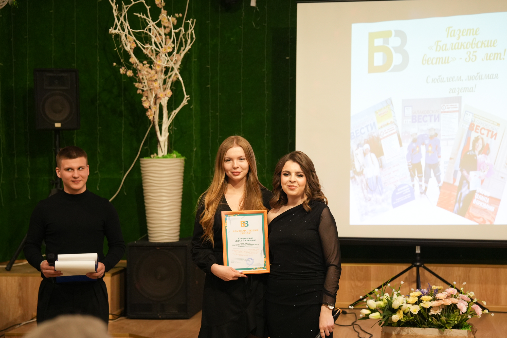 20 февраля в Городском центре искусств г. Балаково состоялось торжественное мероприятие, посвященное 35-летию газеты «Балаковские вести». С приветственными словами обратились заместитель министра информации и массовых коммуникаций Саратовской области М.С. Маламанова, и.о. заместителя главы администрации Балаковского муниципального района по социальным вопросам И.А. Бондарева председатель Собрания Балаковского муниципального района К.Б. Кузнецов.