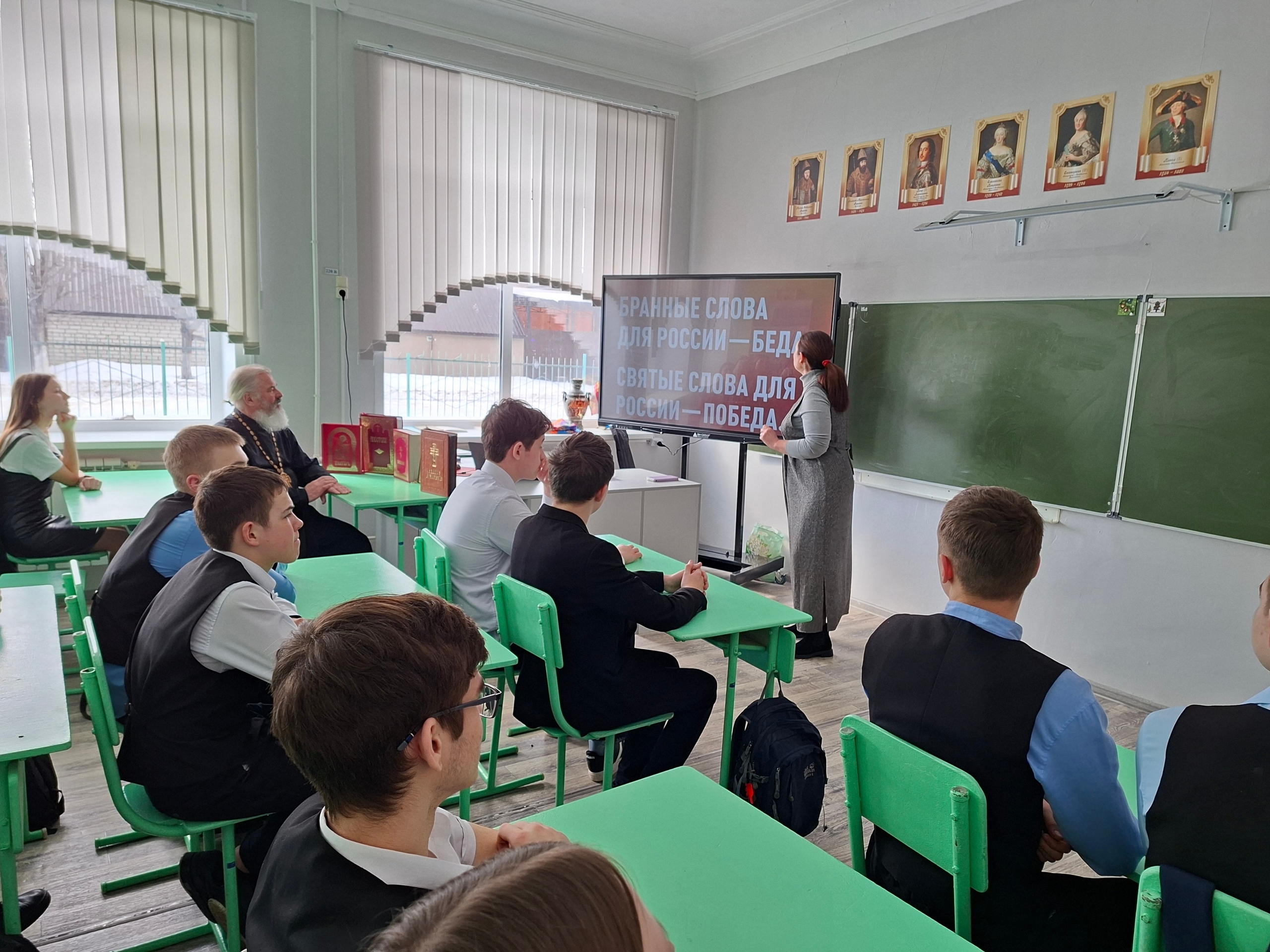 5 марта в МОУ-Лицей города Маркса состоялась встреча учащихся с настоятелем Свято-Андреевского храма протоиереем Валерием Генсицким и помощником настоятеля по миссионерской работе Татьяной Шерстобитовой. Гости провели со старшеклассниками просветительскую беседу на тему «Бранные слова для России — беда».