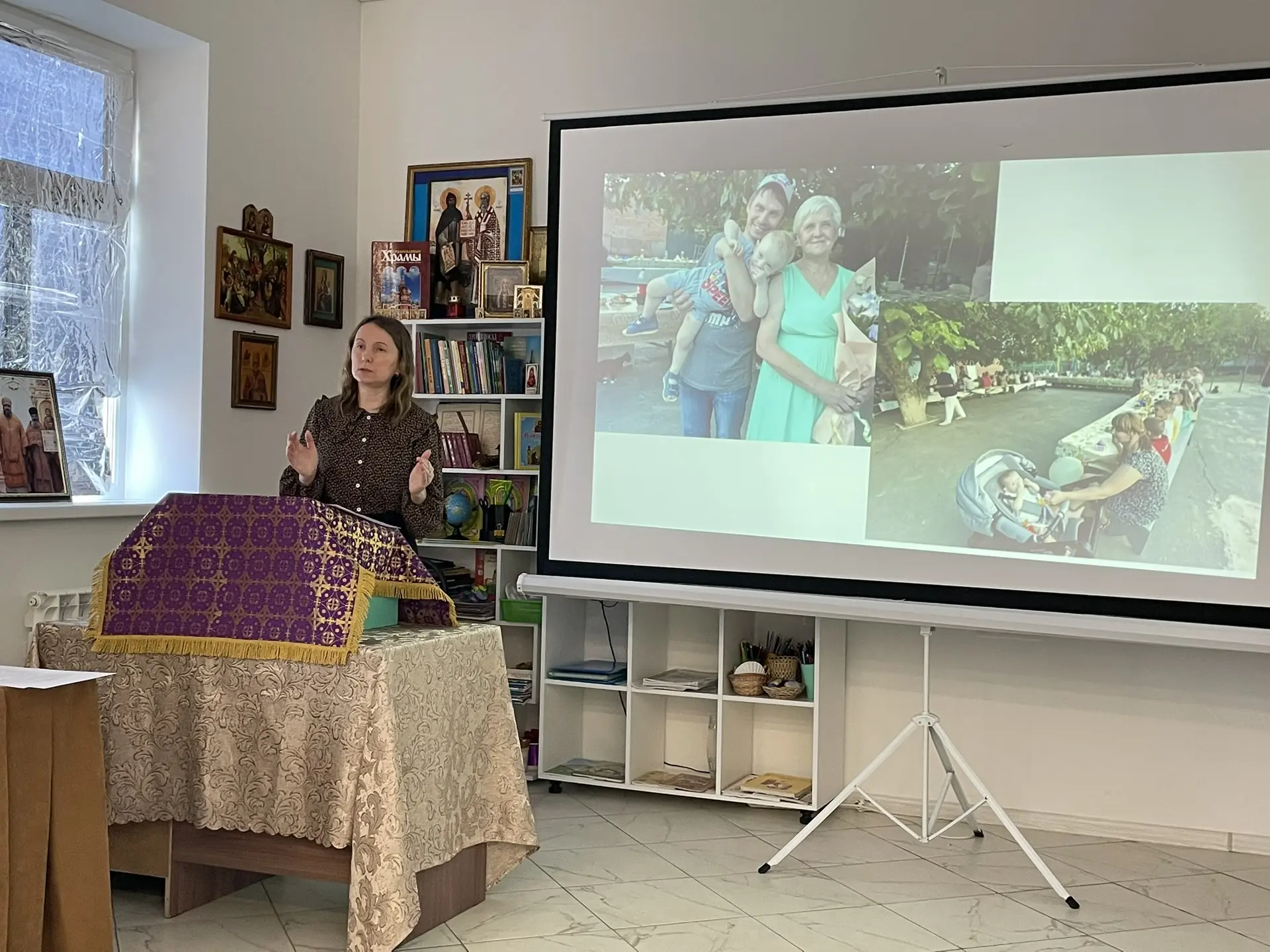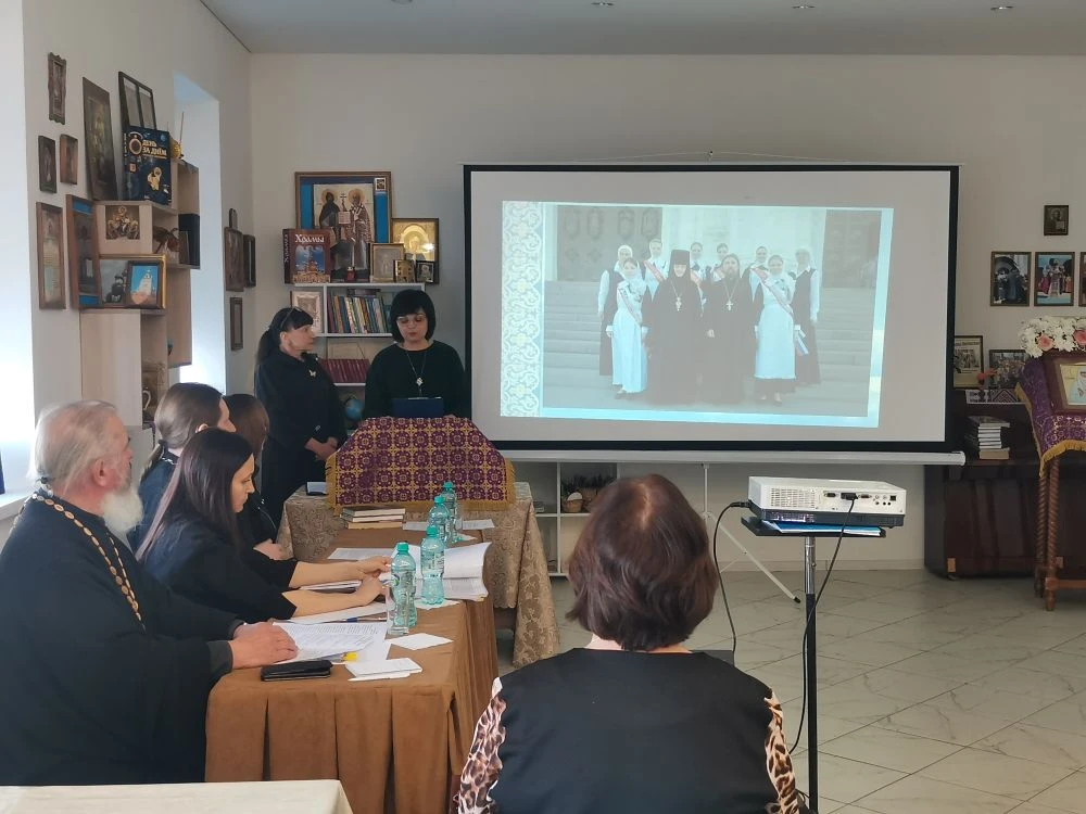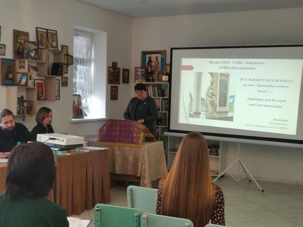 Руководитель районного методического объединения учителей ОРКСЭ и ОДНКНР, помощник благочинного Екатериненштадтского округа по религиозному образованию и катехизации, директор воскресной школы «Ставрос» Свято-Андреевского храма г. Маркса Тамара Кацуба подготовила презентацию с детскими фотографиями семей, представленных на чтениях. Сотрудник библиотеки Светлана Андреева ознакомила участников мероприятия с литературой по тематике помощи детям-сиротам, представив издания, среди которых были книги «Сын полка» и «Дети подземелья», и предложила ознакомиться с выставкой соответствующей литературы в библиотеке.