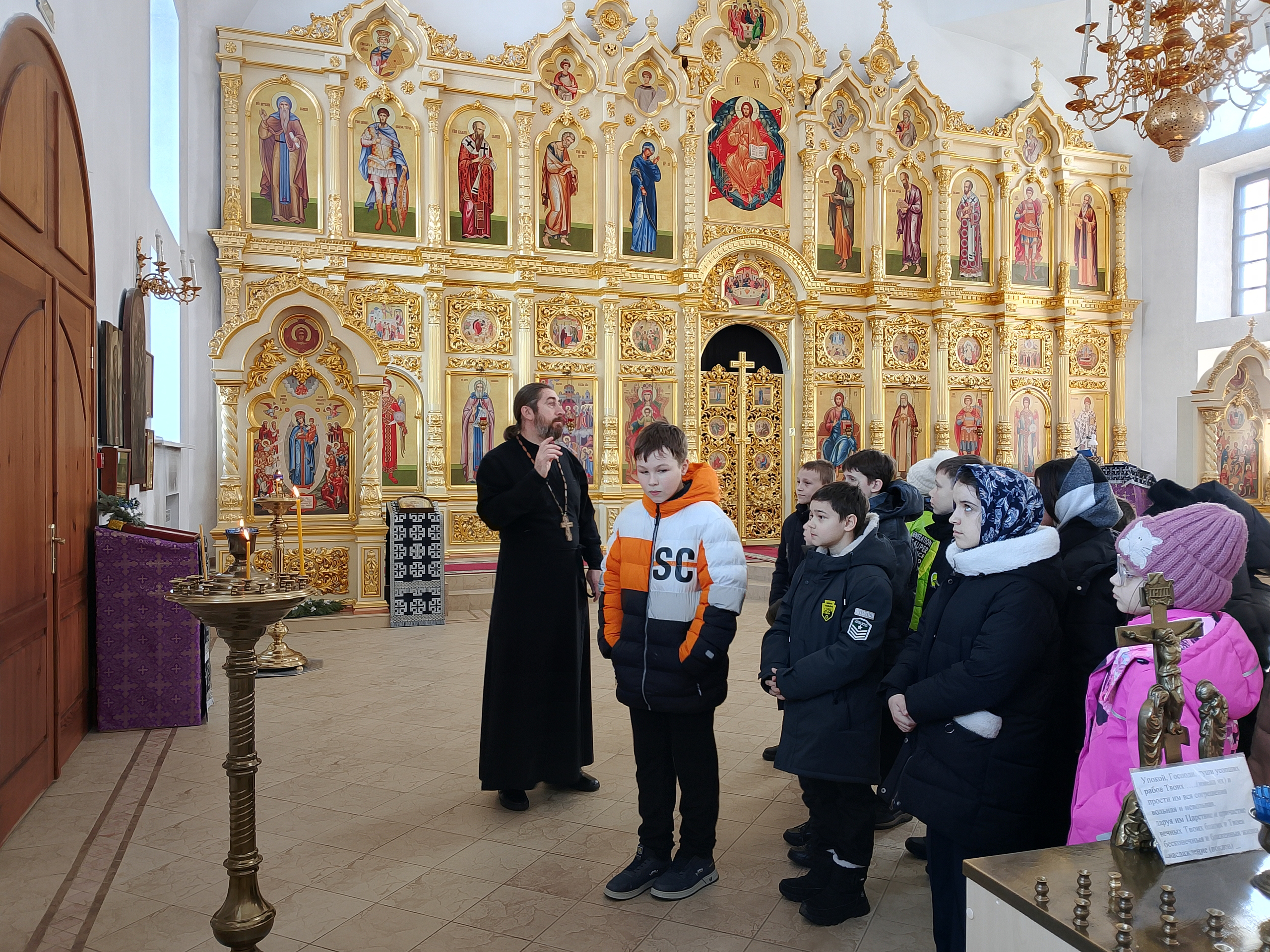 13 марта в храме в честь иконы Пресвятой Богородицы «Державная» п. Горный Краснопартизанского района состоялась экскурсия для учащихся 4 класса общеобразовательной школы поселка Михайловский. Настоятель храма протоиерей Александр Кашулин познакомил юных гостей с устройством иконостаса, святынями (древней иконой Богородицы и образом Николая Чудотворца), а также рассказал о церковных таинствах.