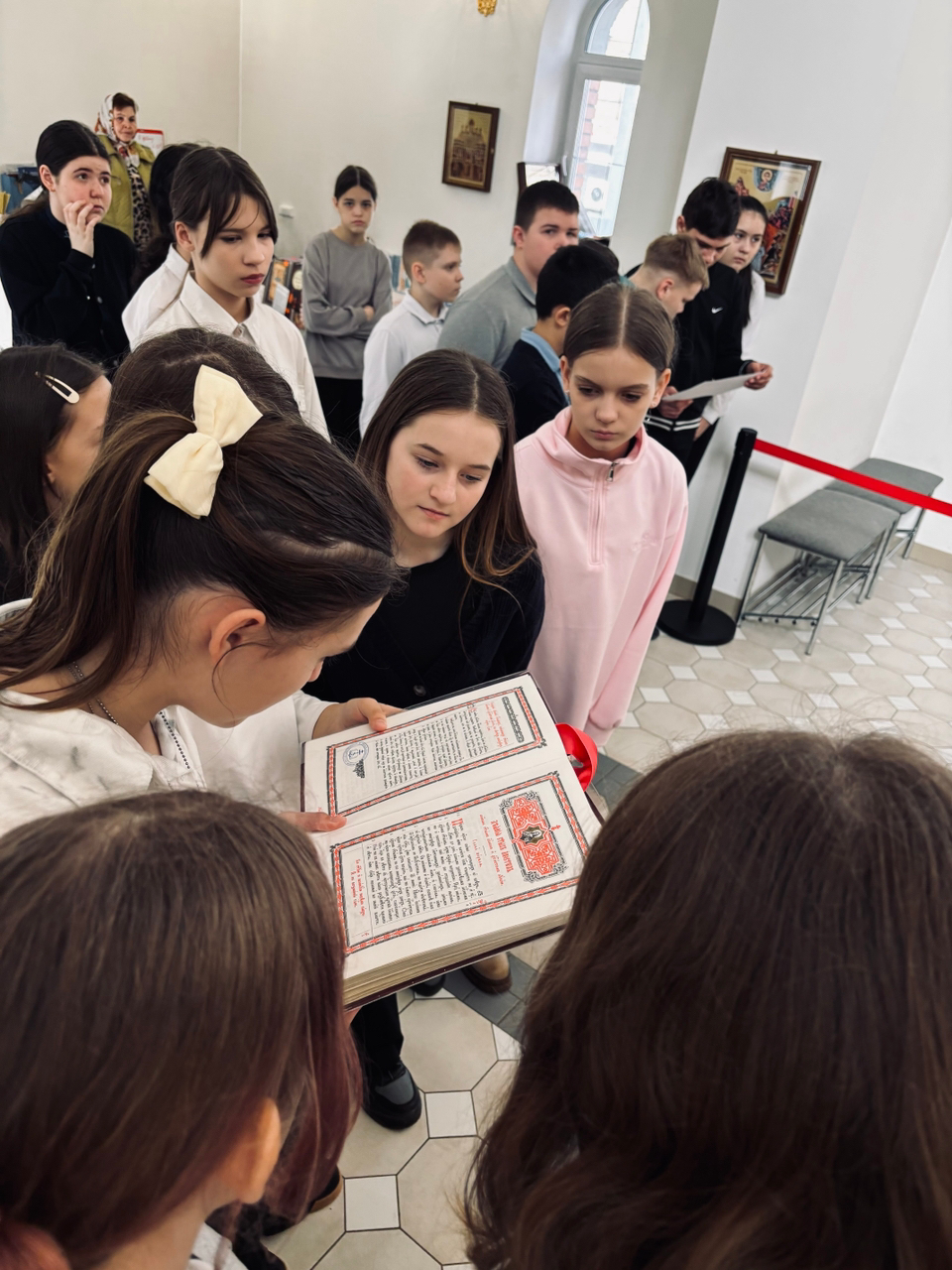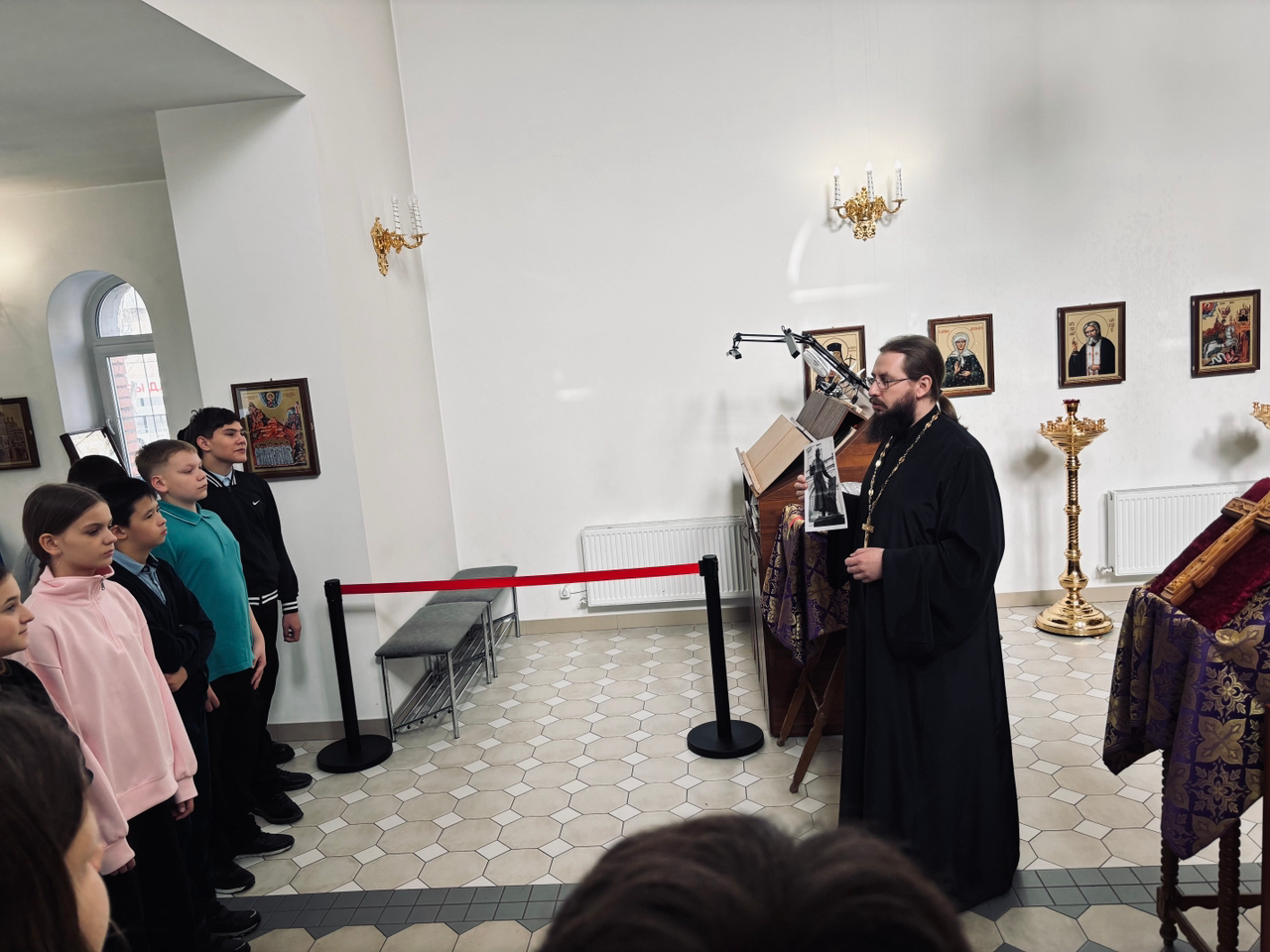 18 марта учащиеся 6 класса СОШ № 18 города Балаково вместе с педагогом Ольгой Сергеевной Антоновой посетили храм во имя святых бессребреников и чудотворцев Космы и Дамиана. Экскурсию для гостей провел настоятель храма иерей Стахий Сахаров. Гости подробно узнали об архитектуре, устройстве и духовном значении православного храма. Далее отец Стахий рассказал о первопечатнике Иване Федорове и об истории начала книгопечатания на Руси. Ребята рассмотрели старинные и современные богослужебные книги.