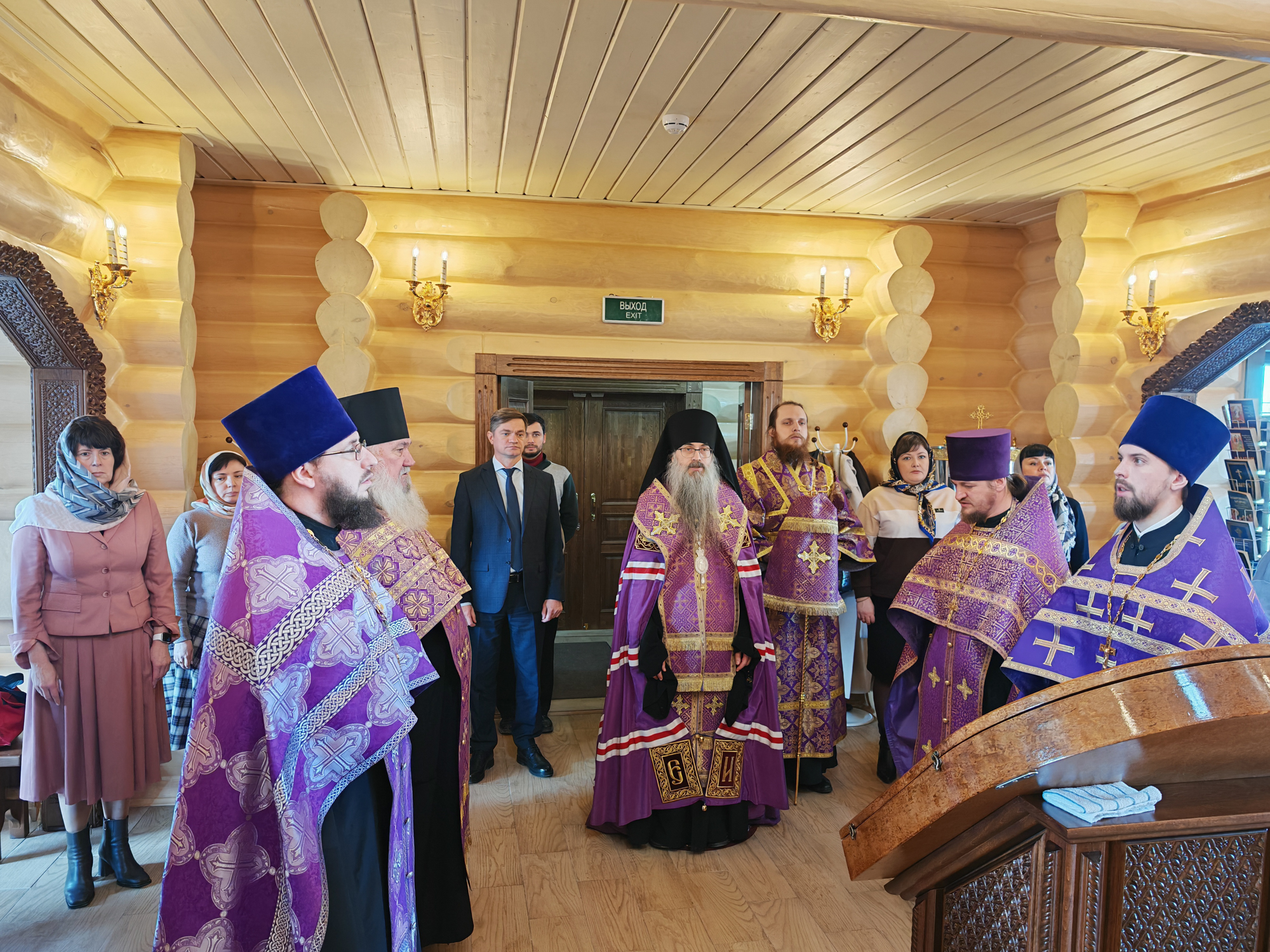 Епископ Иннокентий совершил благодарственный молебен в сослужении благочинного Троицкого округа, настоятеля храма архимандрита Амвросия (Волкова), секретаря Балаковского епархиального управления иерея Николая Бильчука, руководителя епархиального отдела религиозного образования и катехизации иерея Стахия Сахарова, руководителя службы протокола иерея Максима Ивчука, клирика Свято-Троицкого кафедрального собора диакона Тимофея Улямаева.