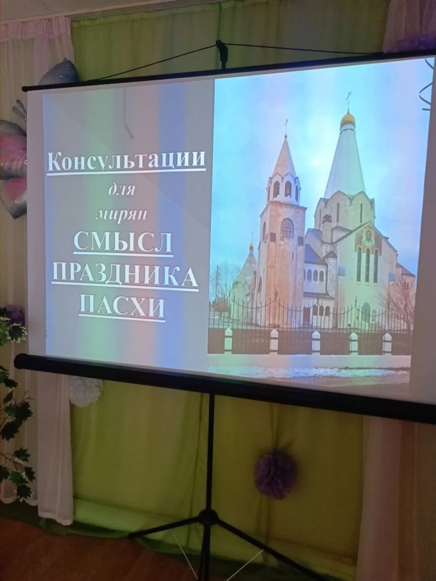Галина Александровна Черняева дополнила беседу наглядной презентацией о главном празднике христиан — Воскресении Христовом. Участники встречи познакомились с иконами, посвящёнными Пасхе, и узнали об их символике и духовной глубине.