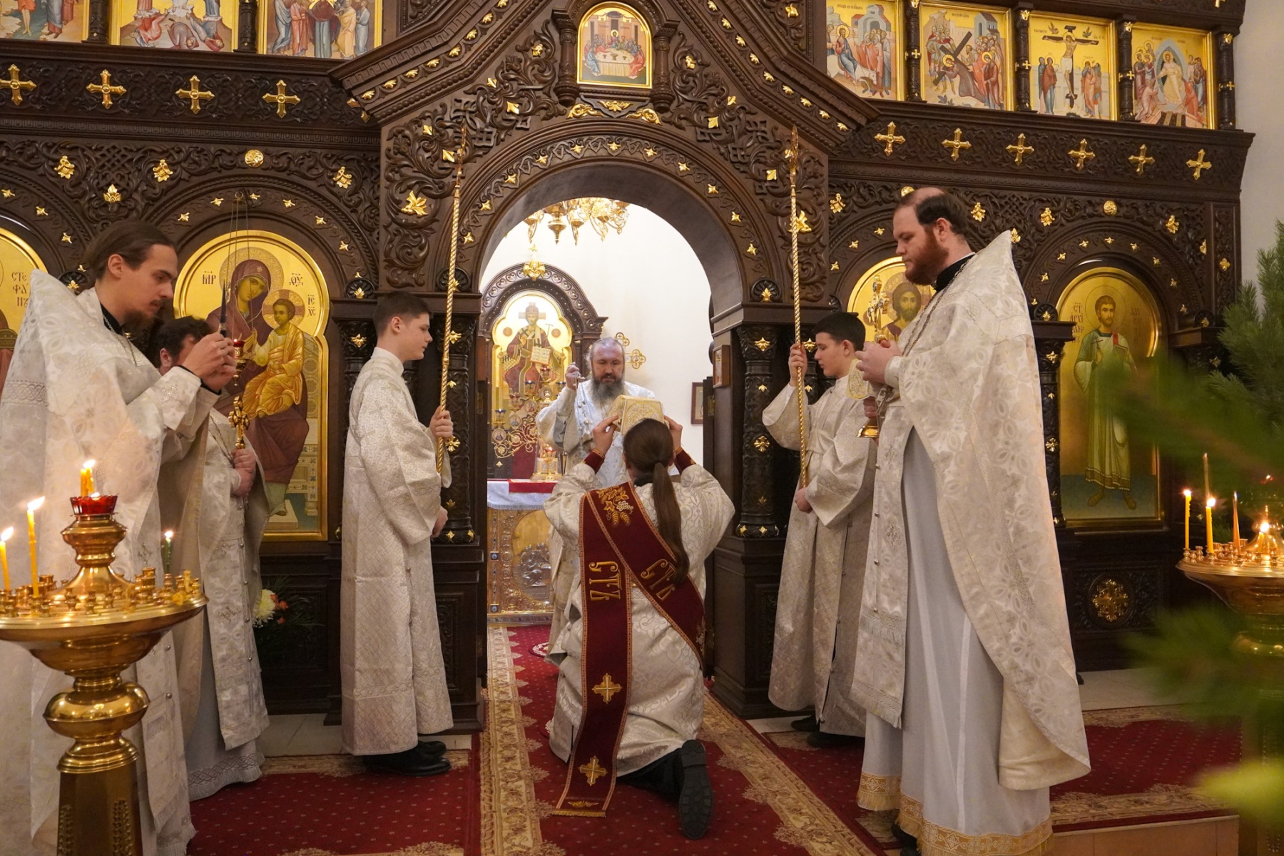Его Преосвященству сослужили секретарь епархиального управления, настоятель храма священник Николай Бильчук, священник Андрей Голощапов, священник Игорь Сысуев, диакон Тимофей Улямаев, диакон Димитрий Белостропов, диакон Максим Ивчук, диакон Михаил Дутка.