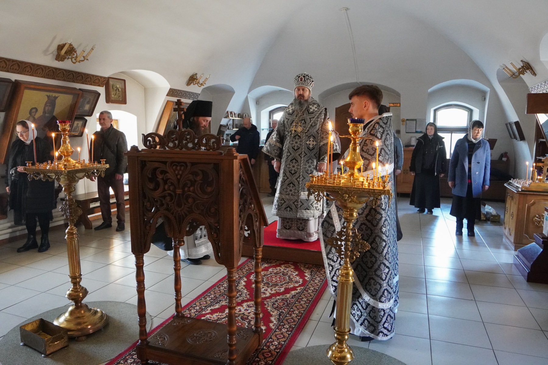 По окончании богослужения архипастырь обратился к молящимся с архипастырским словом: «Хотелось бы обратить внимание на слова из сегодняшнего чтения паремии на шестом часе. Господь через Своего пророка говорит: приближаются ко Мне люди сии устами своими и чтут Меня языком, сердце же их далеко отстоит от Меня (Ис. 29:13). Эти слова ярко отражают состояние многих людей ветхозаветного Израиля, которые большое внимание обращали на внешние предписания, считая, что в этом и заключается главный смысл молитвы и смысл жизни. Они выполняли все, что требовал закон, даже незначительные и мелкие предписания. Самое страшное, что они душой своей не любили Бога. Здесь возникает вопрос и к нам: любим ли мы Бога всем сердцем? Мы считаем, что угождаем Богу исполнением внешних предписаний, например, тем, что не вкушаем в пост тех или иных блюд. Любовь к Богу – это состояние и действия человека, свободного от страстей. Мы должны всегда спрашивать себя о том, устами только ли мы чтим Бога, только ли внешними и формальными предписаниями, или же мы по-настоящему, всем сердцем любим Бога. Стоит только вспомнить о Боге и всех Его благодеяниях для нас: он возвел из небытия в бытие и даровал нам жизнь, воспринял человеческую природу, пострадал и умер на Кресте, – всё Он сделал для нас. Если не возникает в нашем сердце любви к Богу, значит, мы любим что-то другое больше, например, пищу или развлечения. Уменьшая тягу ко всем вещам, мы даем возможность проявиться любви к Богу в нашем сердце. О наличии истинной любви к Богу свидетельствует любовь к окружающим: Кто говорит: «я люблю Бога», а брата своего ненавидит, тот лжец (1 Ин. 4:20). Если мы говорим, что любим Бога, то должны всем сердцем полюбить ближнего».