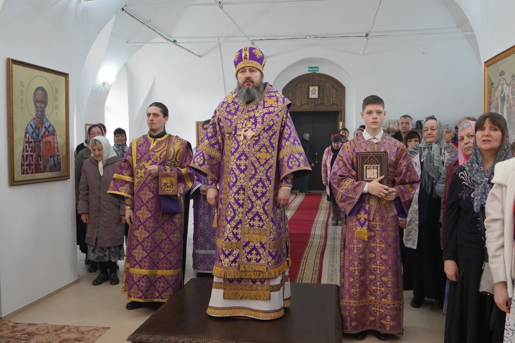 Его Преосвященству сослужили благочинный Николаевского округа протоиерей Владимир Растопшин, иеромонах Митрофан (Недугов), диакон Тимофей Улямаев, диакон Михаил Дутка.