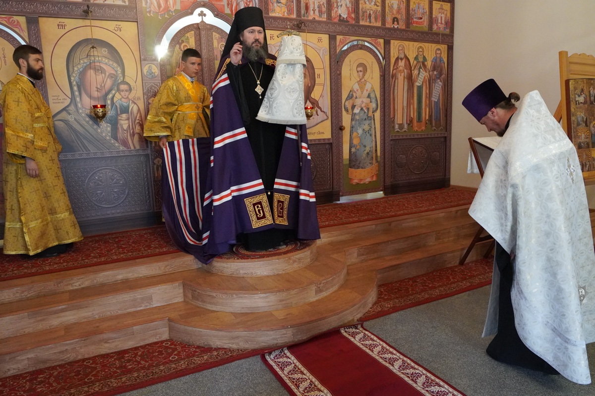 Его Преосвященству сослужили секретарь епархиального управления священник Николай Бильчук, настоятель храма священник Сергий Сафаров, диакон Тимофей Улямаев.