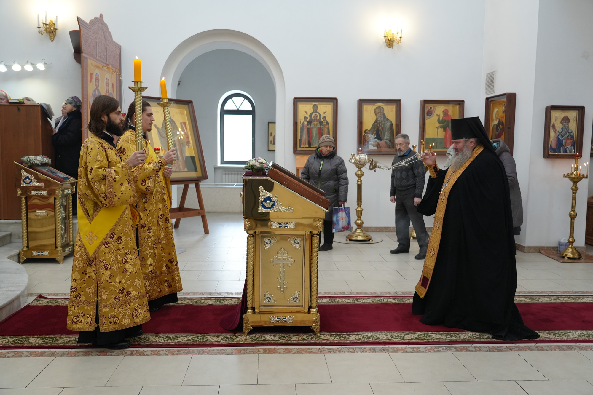 Богослужебные песнопения исполнил хор храма под управлением регента Ольги Земсковой.