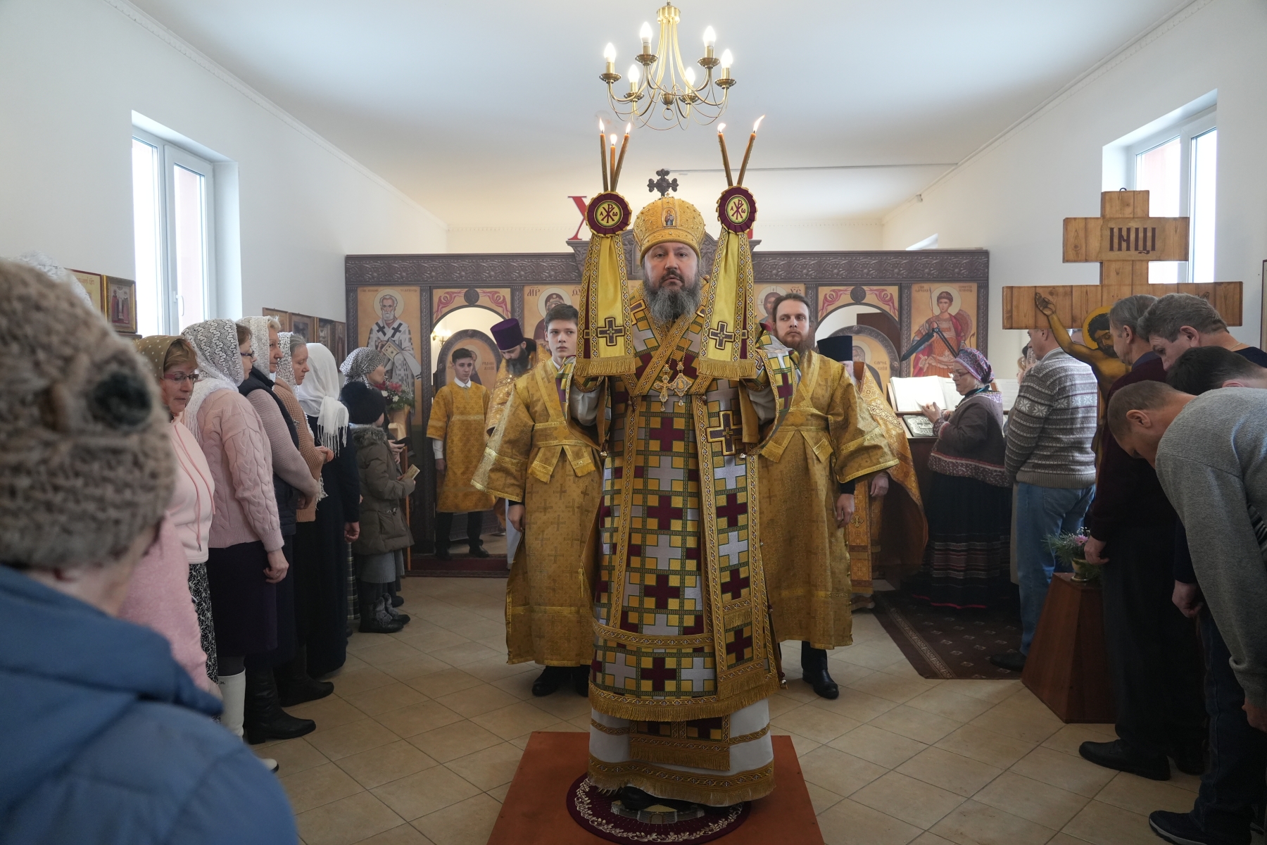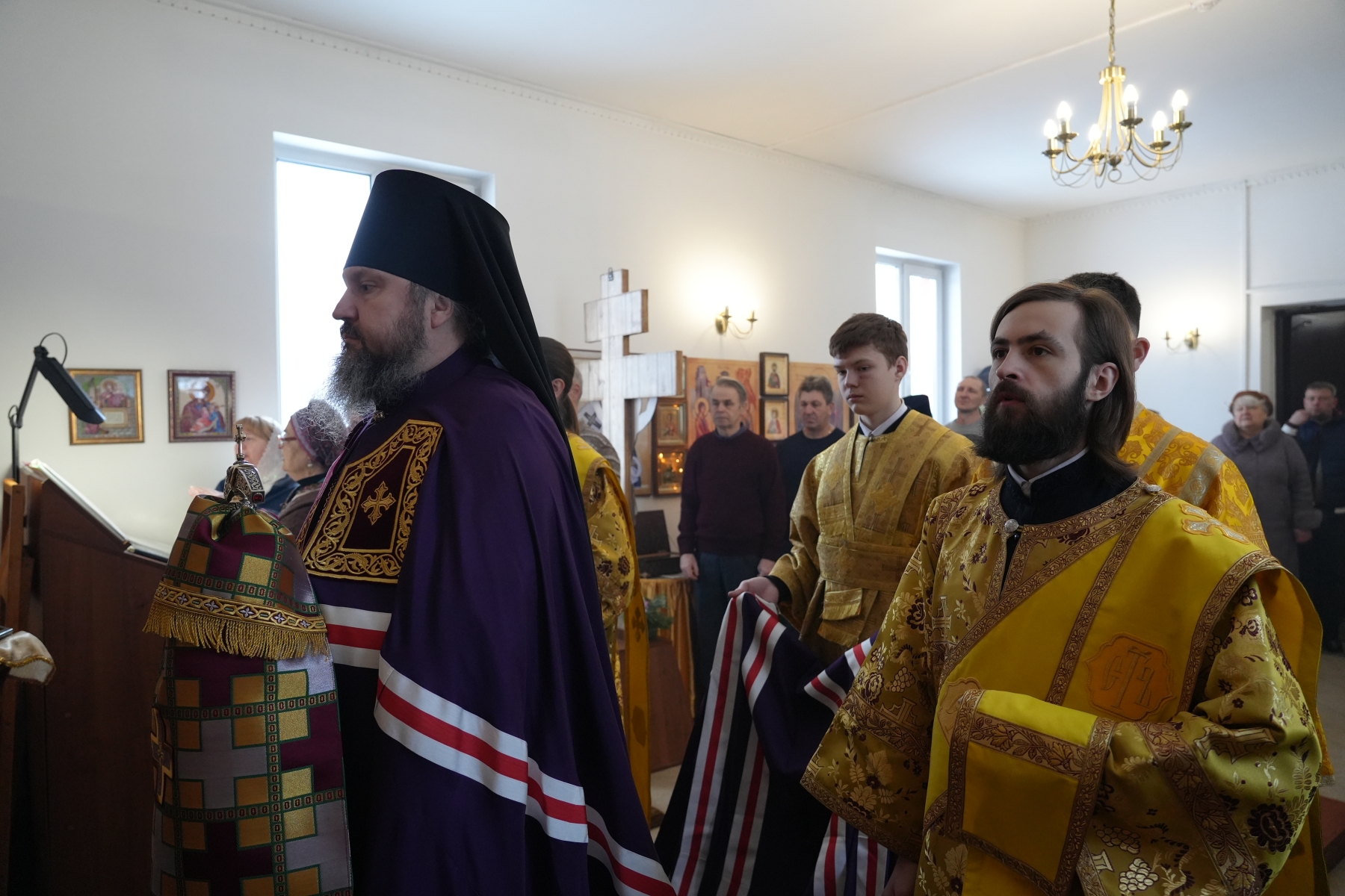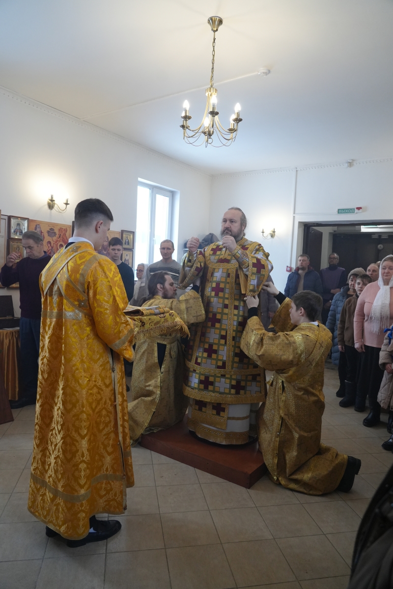 Его Преосвященству сослужили благочинный Андреевского округа протоиерей Валерий Генсицкий, настоятель храма иерей Андрей Аскаров, клирик Свято-Троицкого кафедрального собора г. Балаково диакон Тимофей Улямаев, клирик храма Рождества Христова г. Балаково диакон Михаил Дутка.