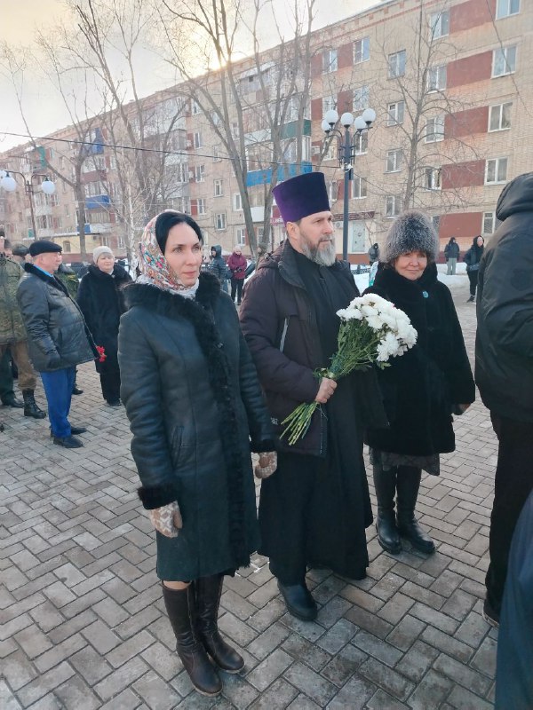 В День защитника Отечества клирик храма Рождества Христова г. Балаково принял участие в возложении цветов