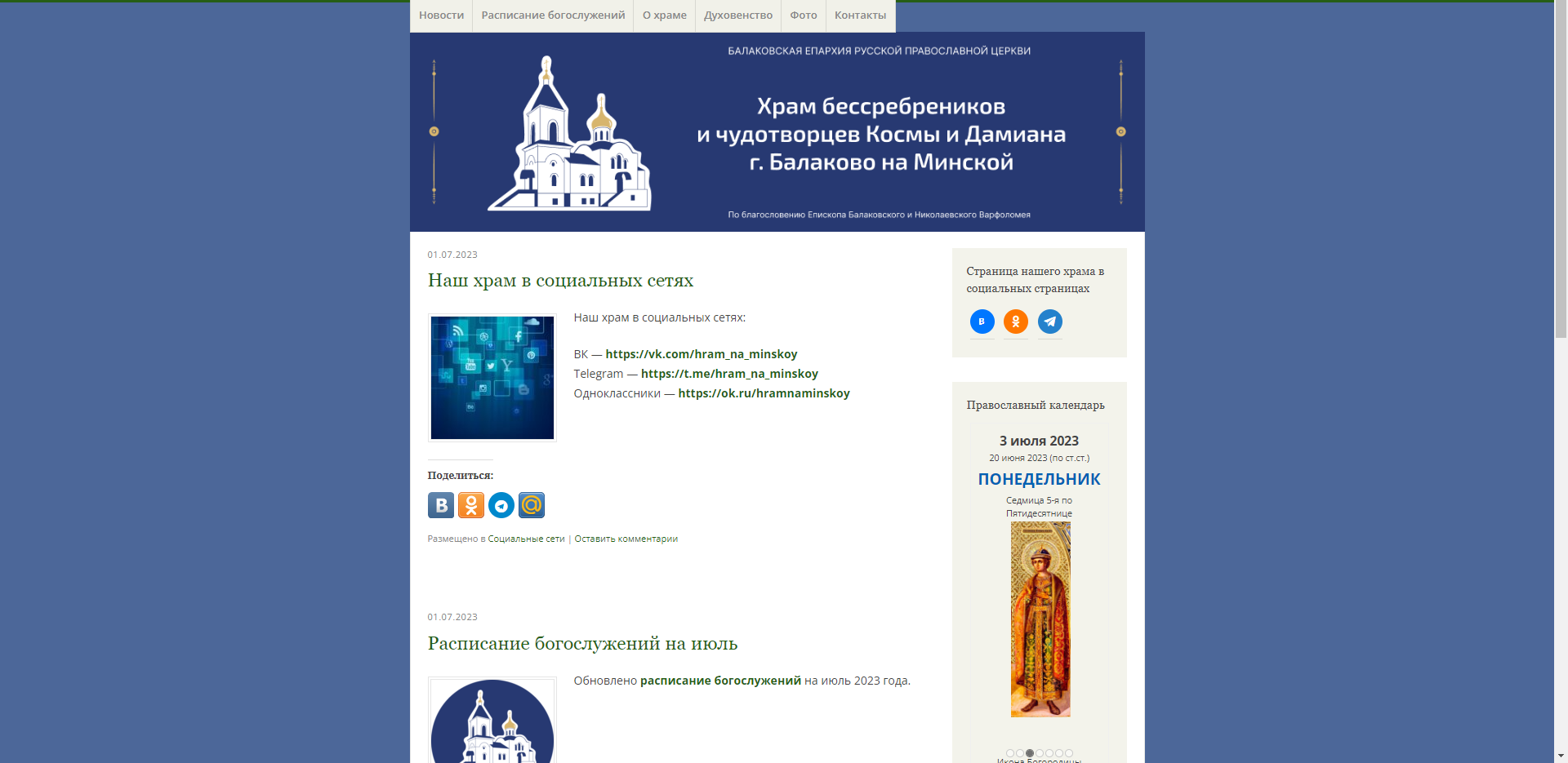 Начал работу сайт храма во имя святых бессребреников и чудотворцев Космы и Дамиана г. Балаково
