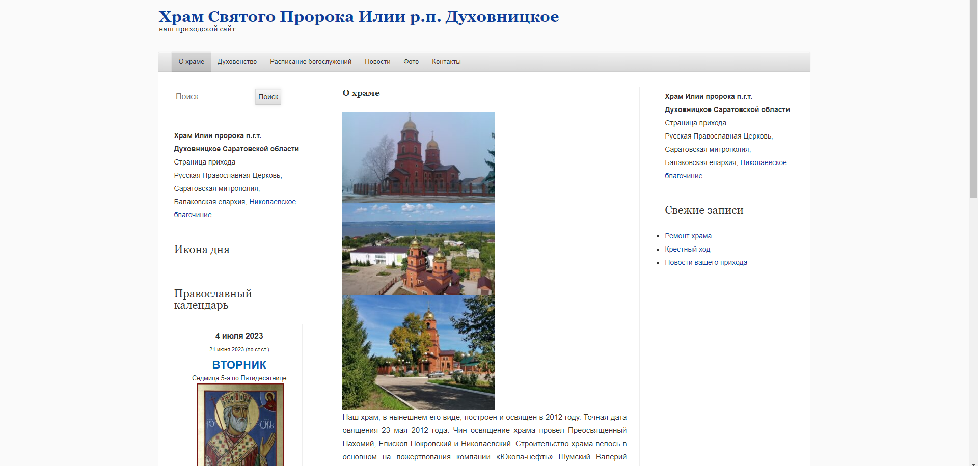 Сайт храма во имя святого пророка Божия Илии р.п. Духовницкое начал свою работу
