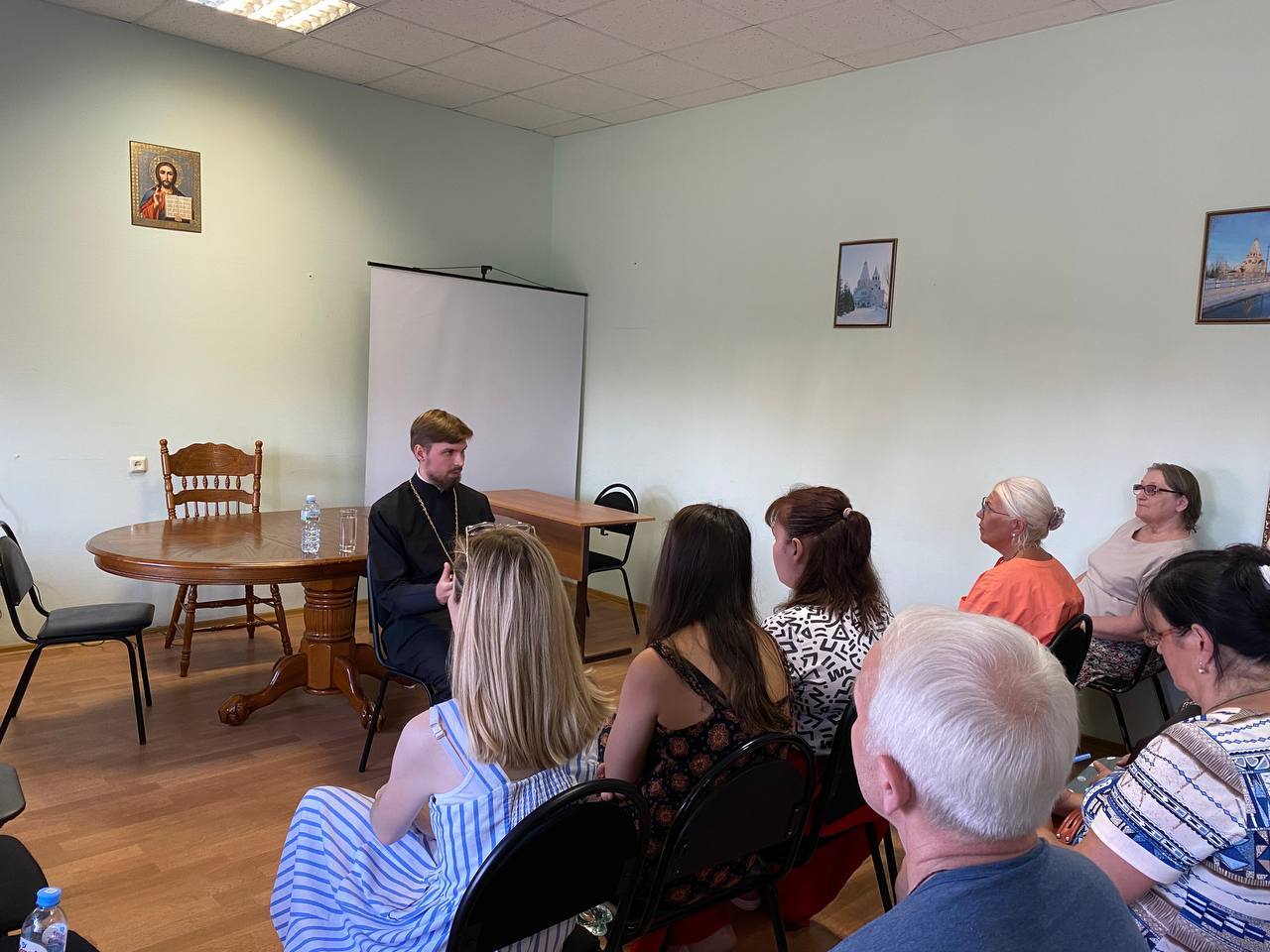 Отец Максим рассказал, что такое богослужебный цикл, какие книги используются при подготовке к службе, а также о важности приходской общины. Собравшиеся обсудили различия вечерних богослужений и подробно разобрали первую часть Литургии — проскомидию.
