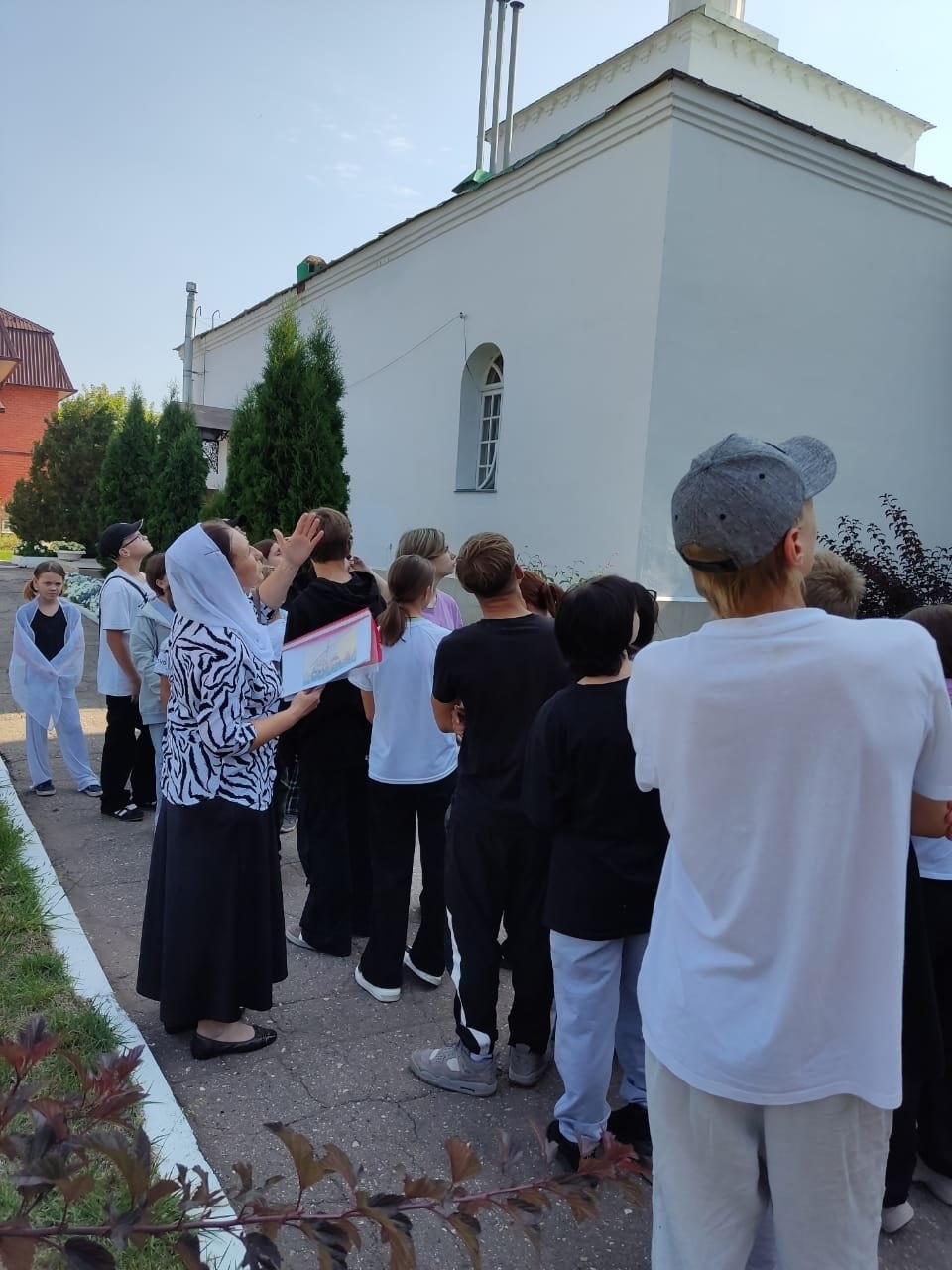 В завершение встречи возле храма состоялась беседа с воспитанниками лагеря о красоте Божьего мира.