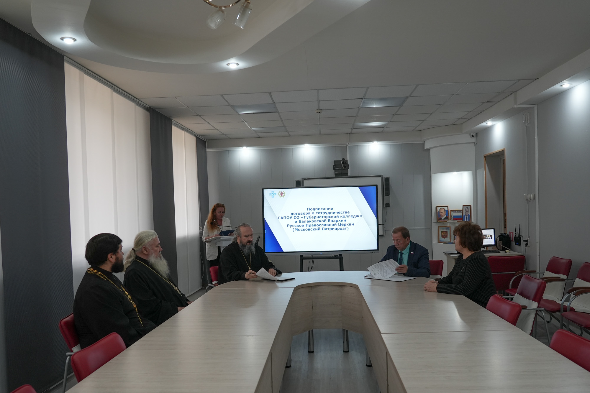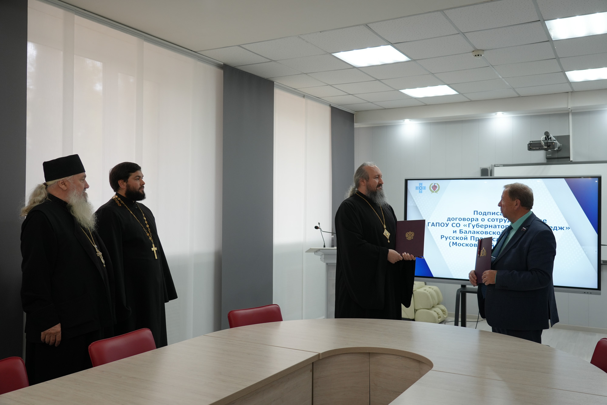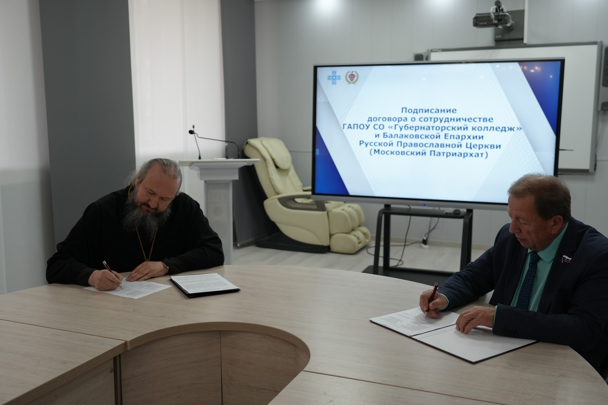 16 октября в зале заседаний Губернаторского колледжа состоялось подписание договора о сотрудничестве Балаковской епархии и Губернаторского колледжа (г. Балаково) в сфере образовательной, социальной и культурно-просветительской деятельности.