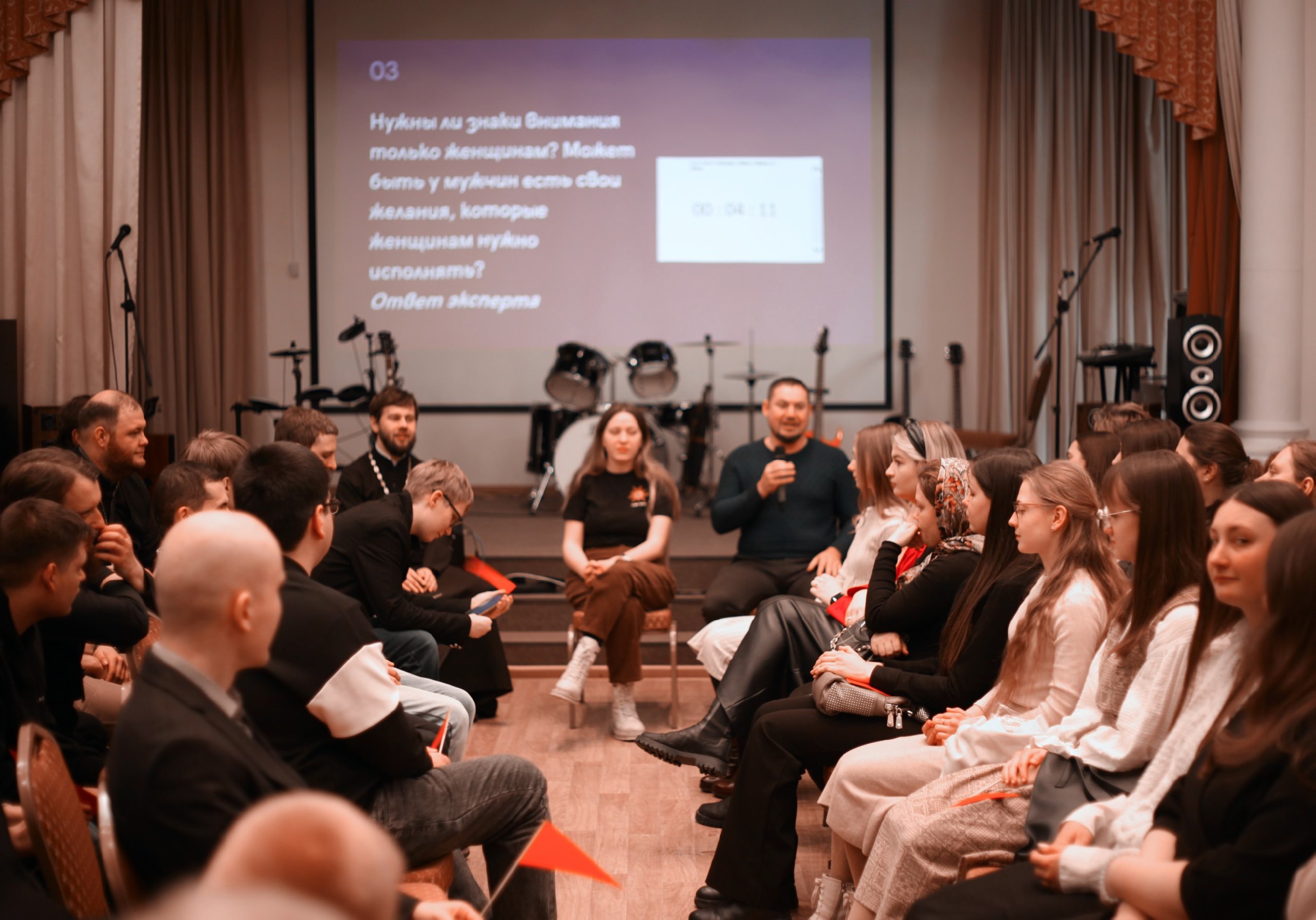 Затем в актовом зале Свято-Троицкого собора гости из Балаковской епархии приняли участие в интерактивах и интеллектуальных играх, организованных православными молодежными обществами из Саратовской и Пензенской епархий.
