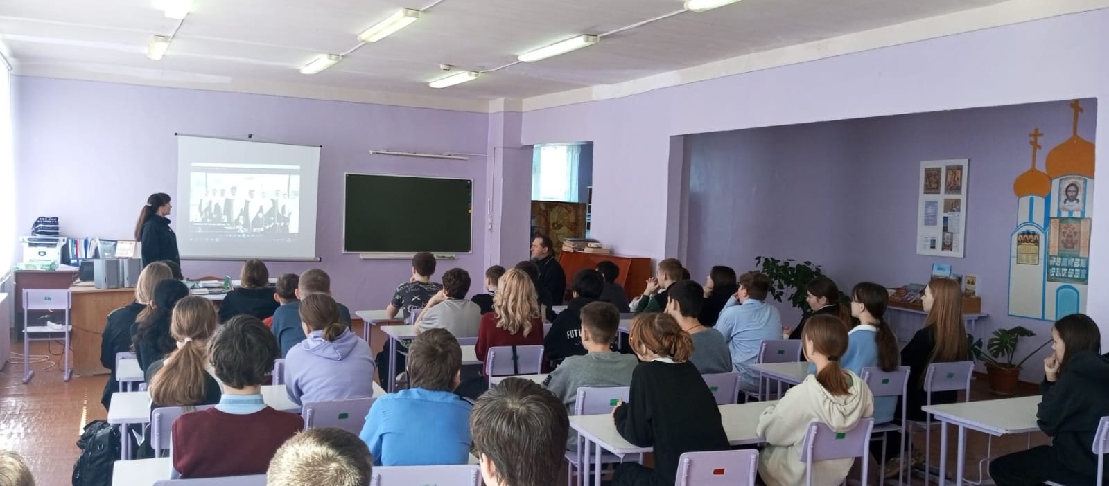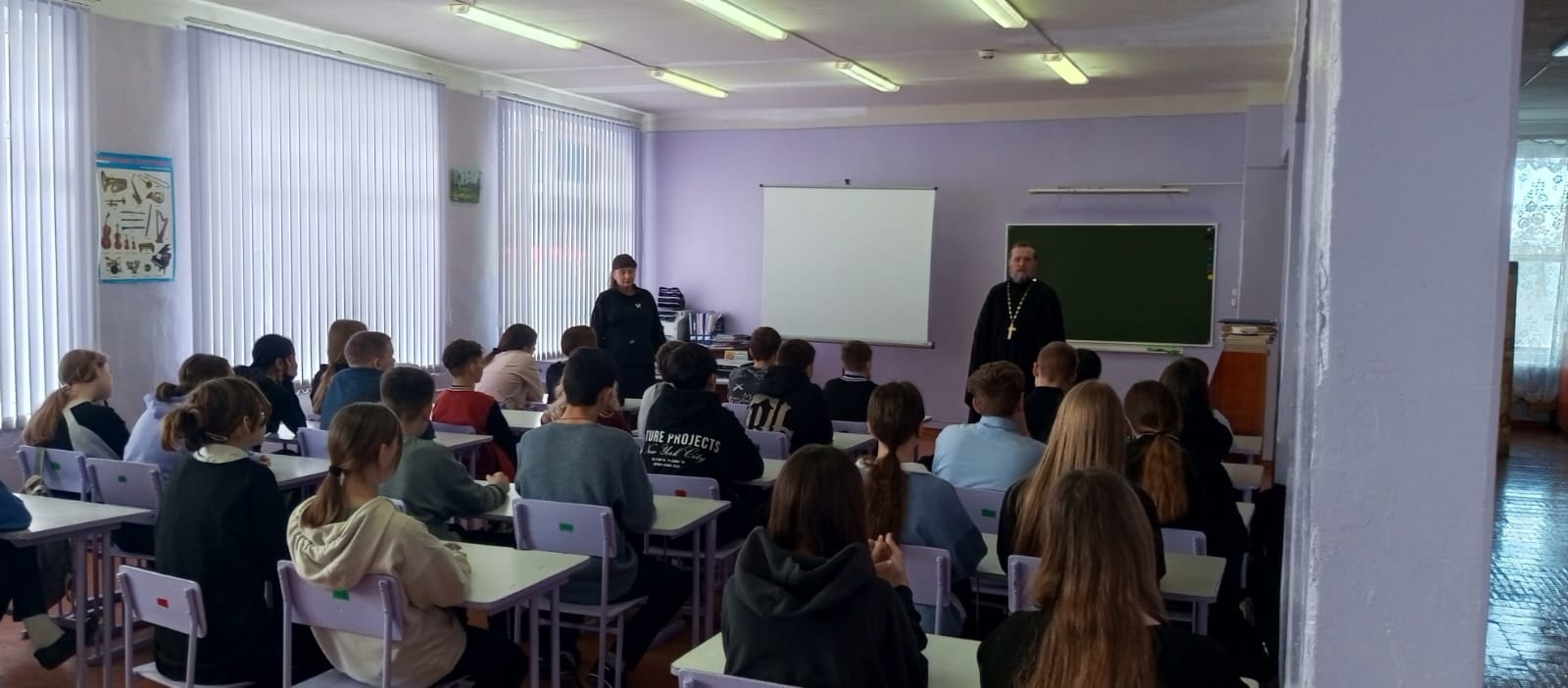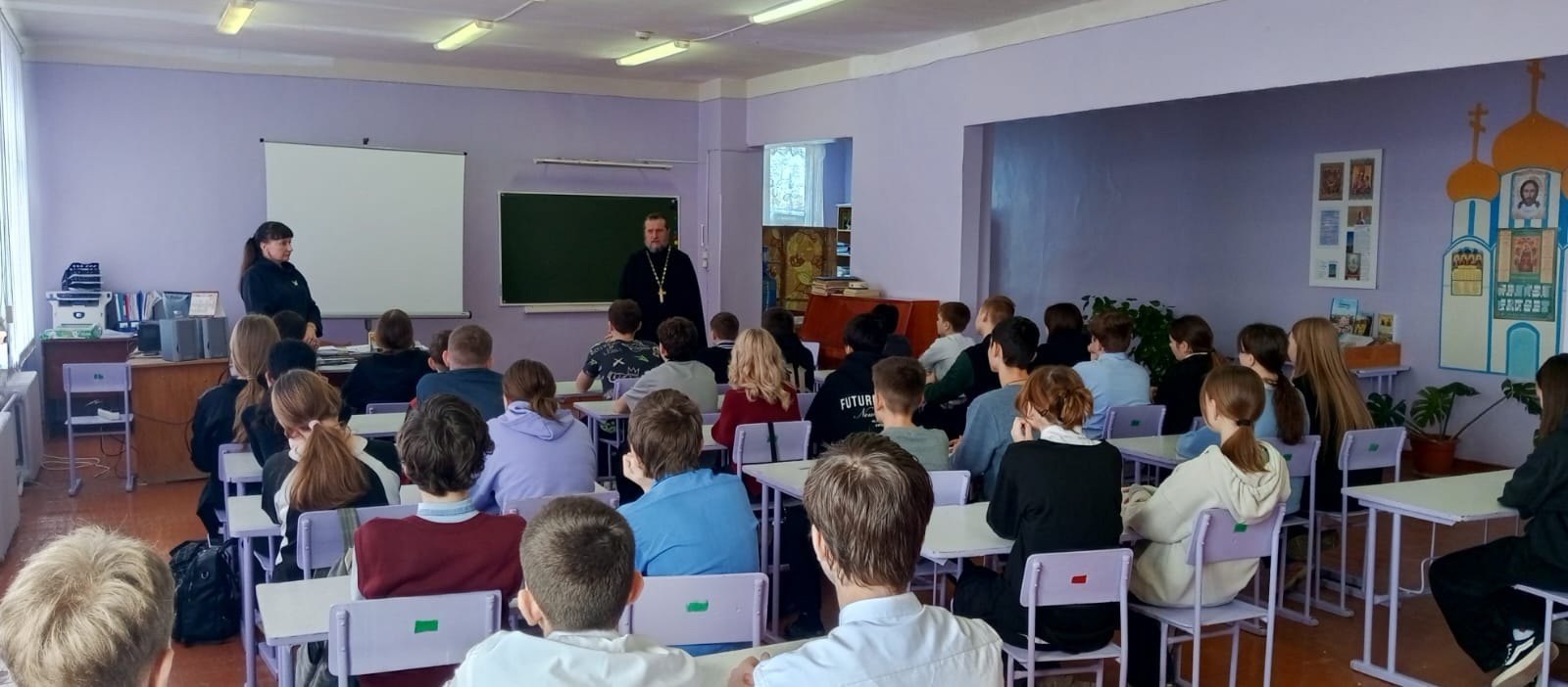 В завершение мероприятия отец Андрей поблагодарил школьников и классного руководителя, преподавателя ОРКСЭ Елену Михайловну Ерузину и ответил на вопросы ребят.