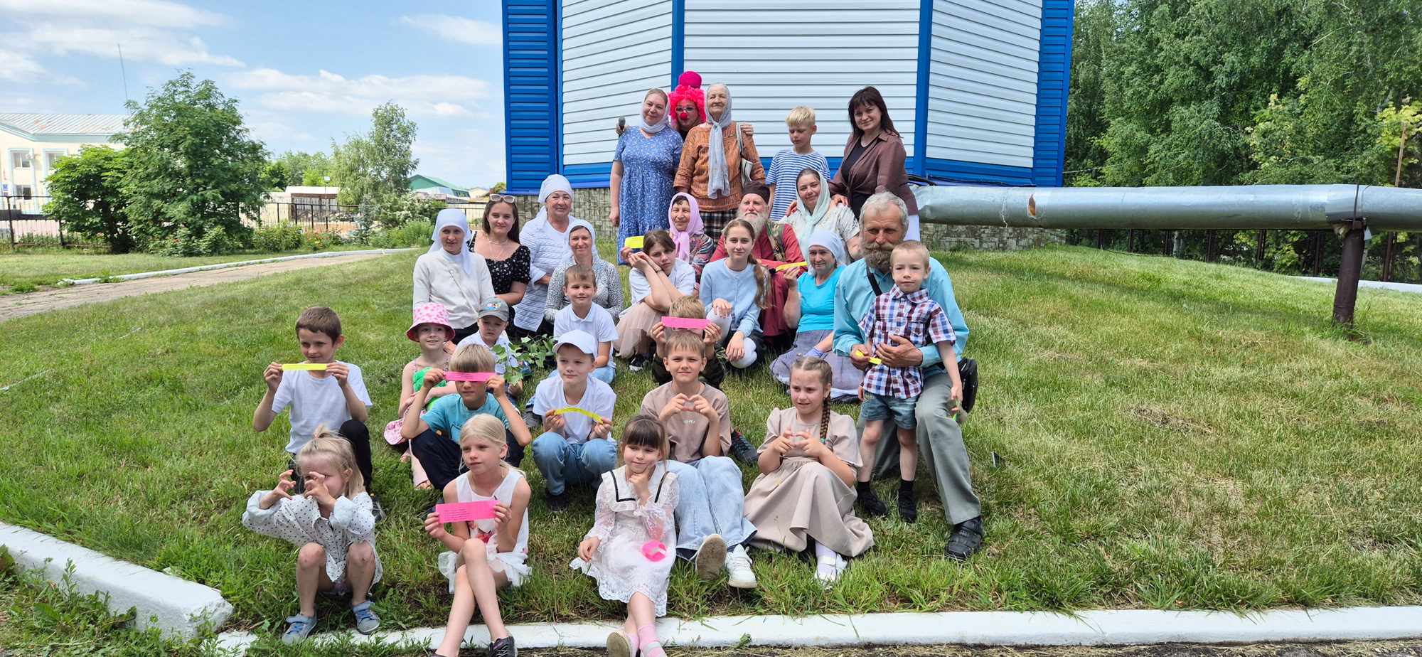 После богослужения на территории храма был организован праздник для жителей села. Отец Константин напомнил собравшимся об истории разрушенной в советские годы церкви и об этапах строительства современного храма.