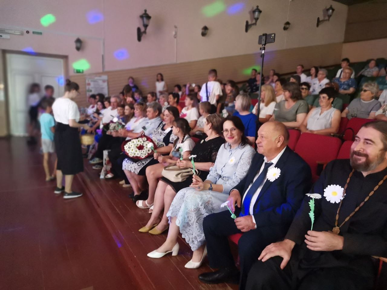 Учащиеся воскресной школы также раздали зрителям ромашки – символ праздника, сделанные своими руками.