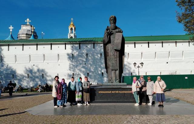 Затем паломники посетили Свято-Троицкую Сергиеву Лавру, расположенную в Сергиевом Посаде Московской области. Прославленный монастырь, основанный в 1337 году игуменом земли Русской преподобным Сергием Радонежским, на протяжении почти семи веков является обителью усердных молитвенников, местом сосредоточия отечественных подвижников. В Сергиев Посад паломническая группа прибыла вечером в субботу, и поклонившись мощам её основателя, преподобного Сергия, и иконе «Святая Троица» преподобного Андрея Рублёва в Троицком храме, верующие помолились за всенощным бдением в Успенском соборе монастыря, а утром на Божественной литургии причастились Святых Христовых Таин.