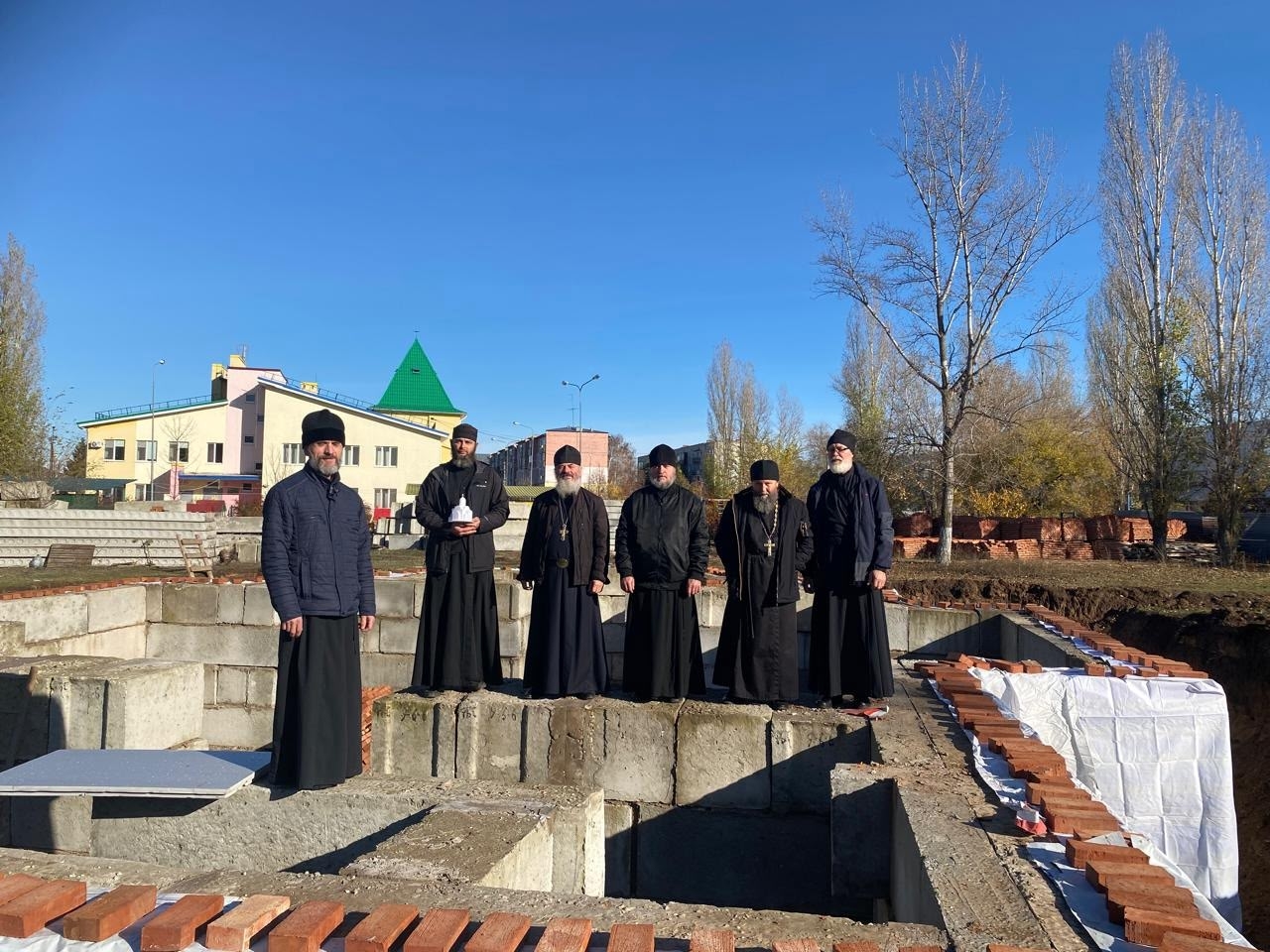 После собрания священнослужители посетили храм во имя великомученика Георгия Победоносца (микрорайон Простоквашино), где настоятель прихода иерей Андрей Аскаров рассказал о ходе строительства храма.