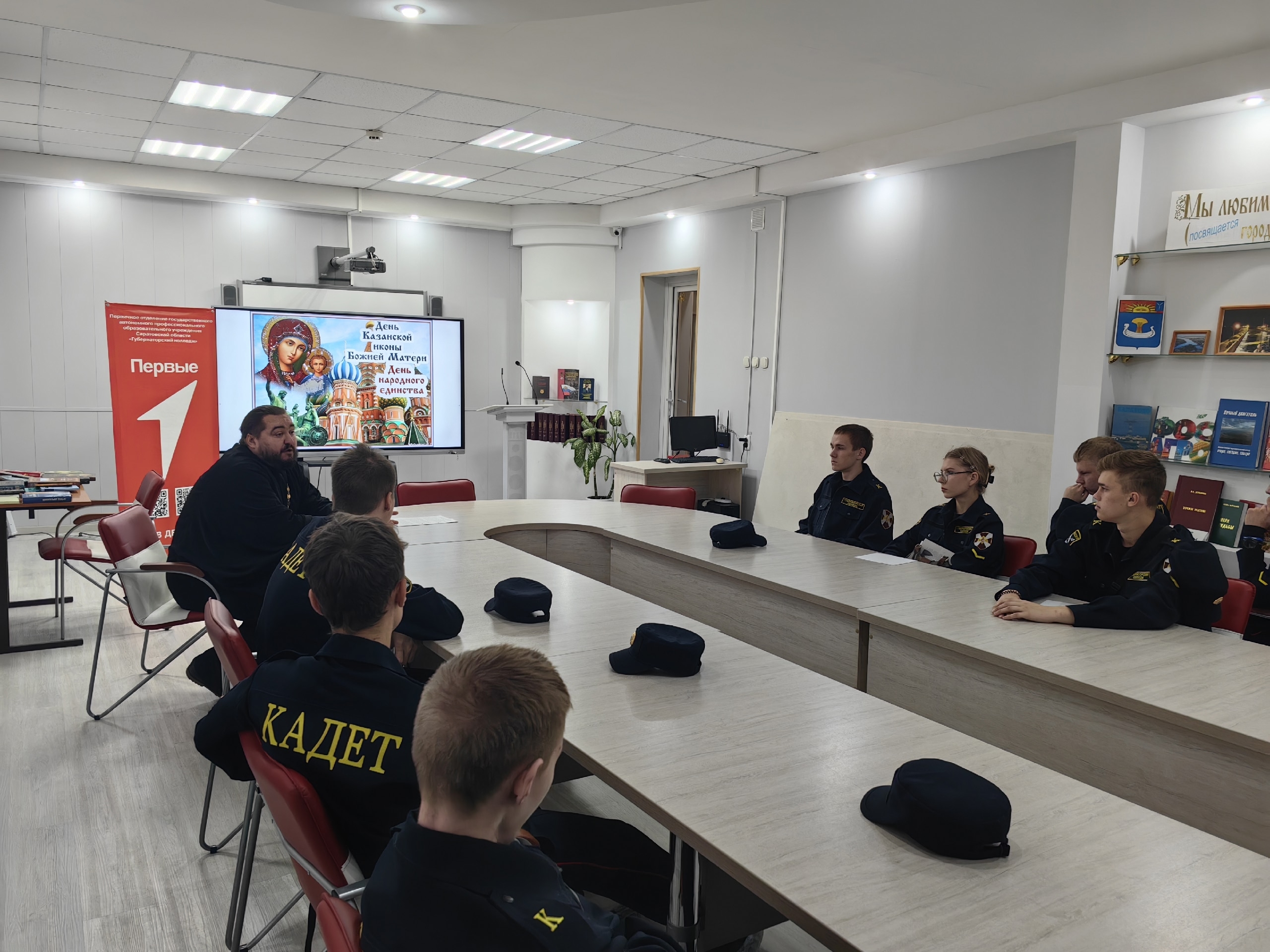7 ноября в Губернаторском колледже (г. Балаково) состоялась встреча руководителя миссионерского отдела Балаковской епархии, настоятеля Свято-Троицкого храма с. Малое Перекопное священника Димитрия Волкова со студентами колледжа. Разговор был посвящен празднику Казанской иконы Божией Матери и Дню народного единства.