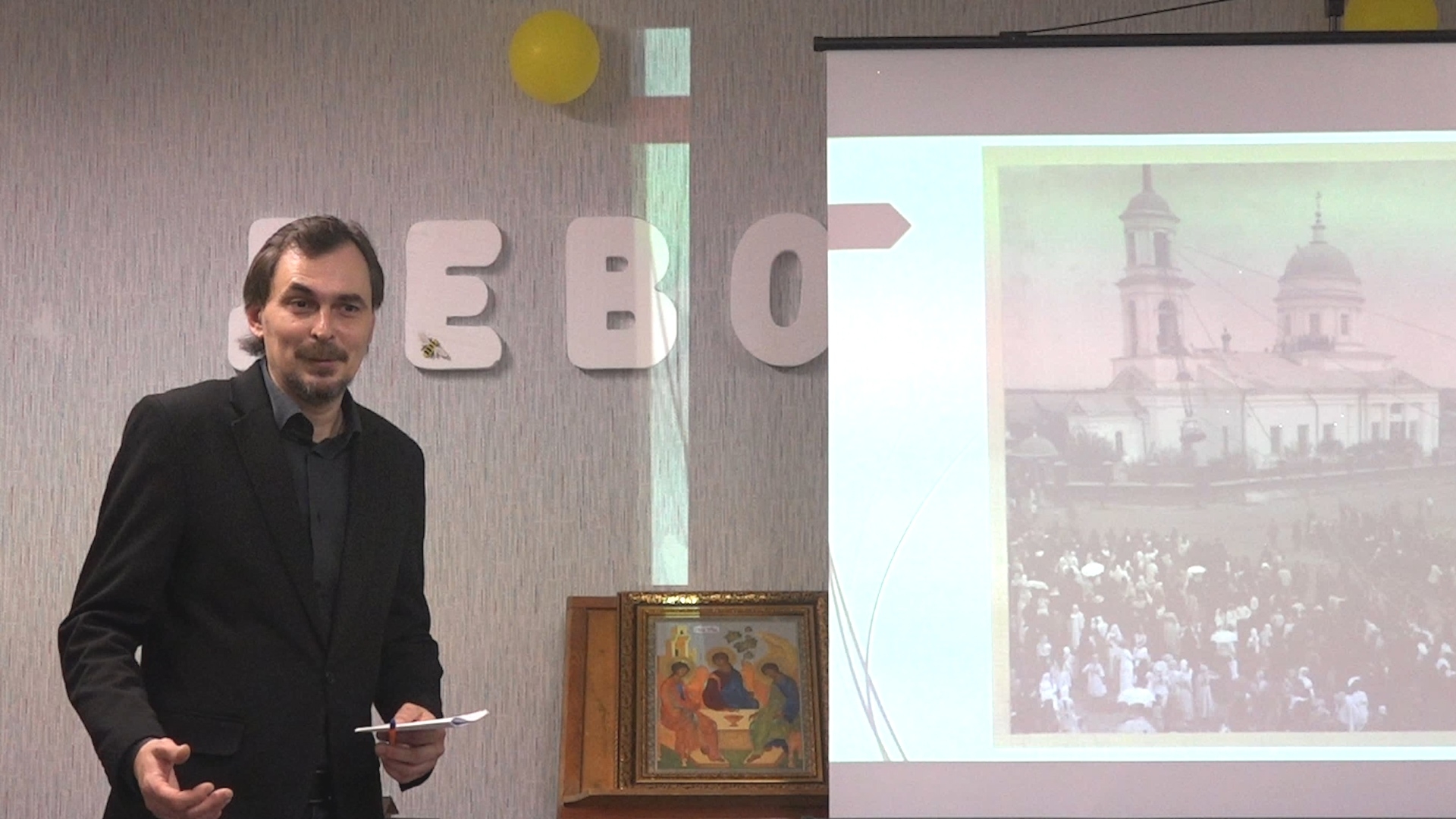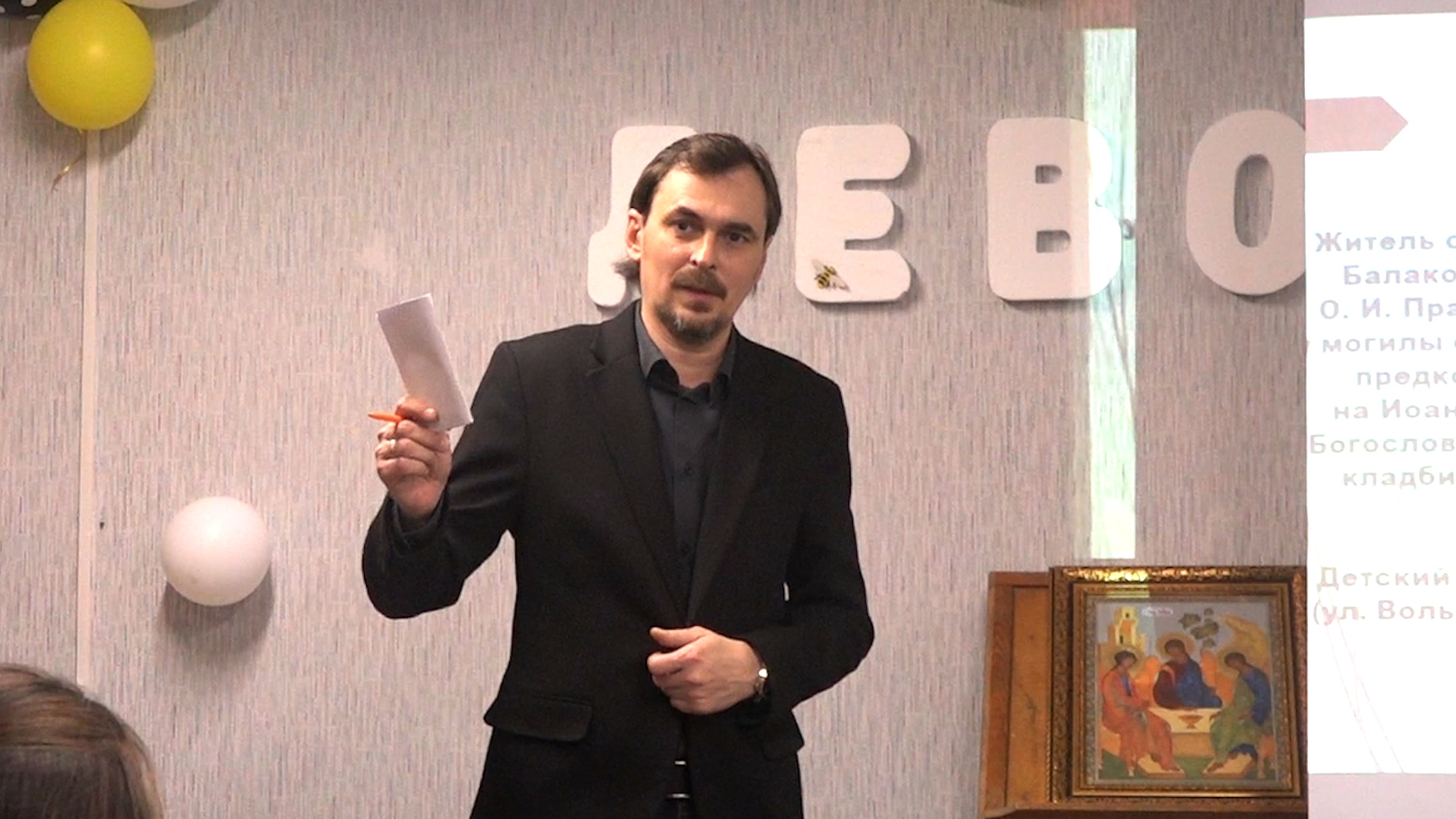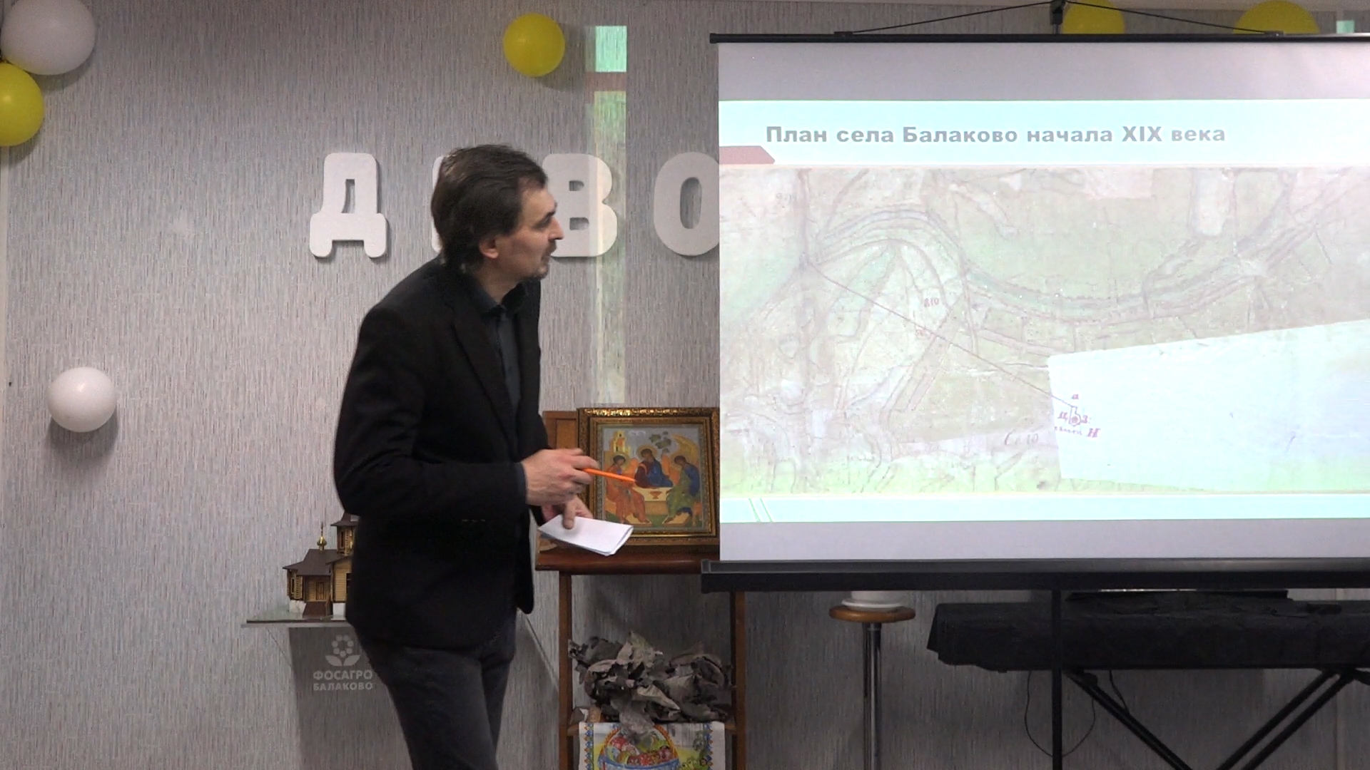Павел Константинович рассказал о первых кладбищах села Балаково, располагавшихся на исторических окраинах города: на улице Селитбенской и Кормежинской, а также на месте спортивного корпуса БФ СГЮА. Слушатели с интересом узнали информацию о некрополе, который располагался на пересечении улиц Советской, Московской и Ленина, где впоследствии была построена Никольская единоверческая церковь. Особый интерес, связанный с последними находками склепов на улице Вольской, вызвала история кладбища, которое располагалось на территории Детского парка и являлось самым большим некрополем дореволюционного Балаково. В заключение Павел Константинович рассказал о формировании и закрытии последнего дореволюционного кладбища Nº 1 на улице Комсомольской.