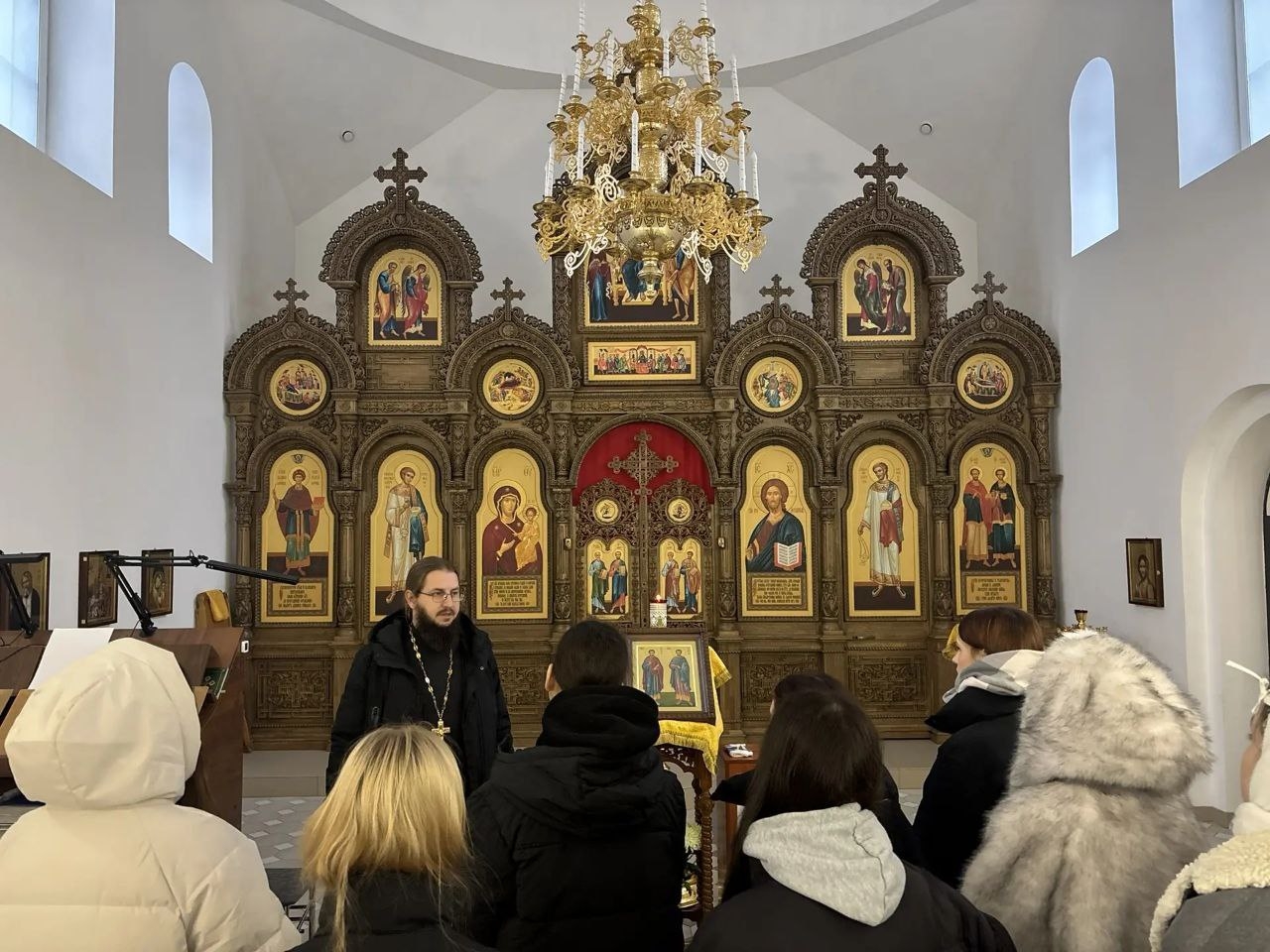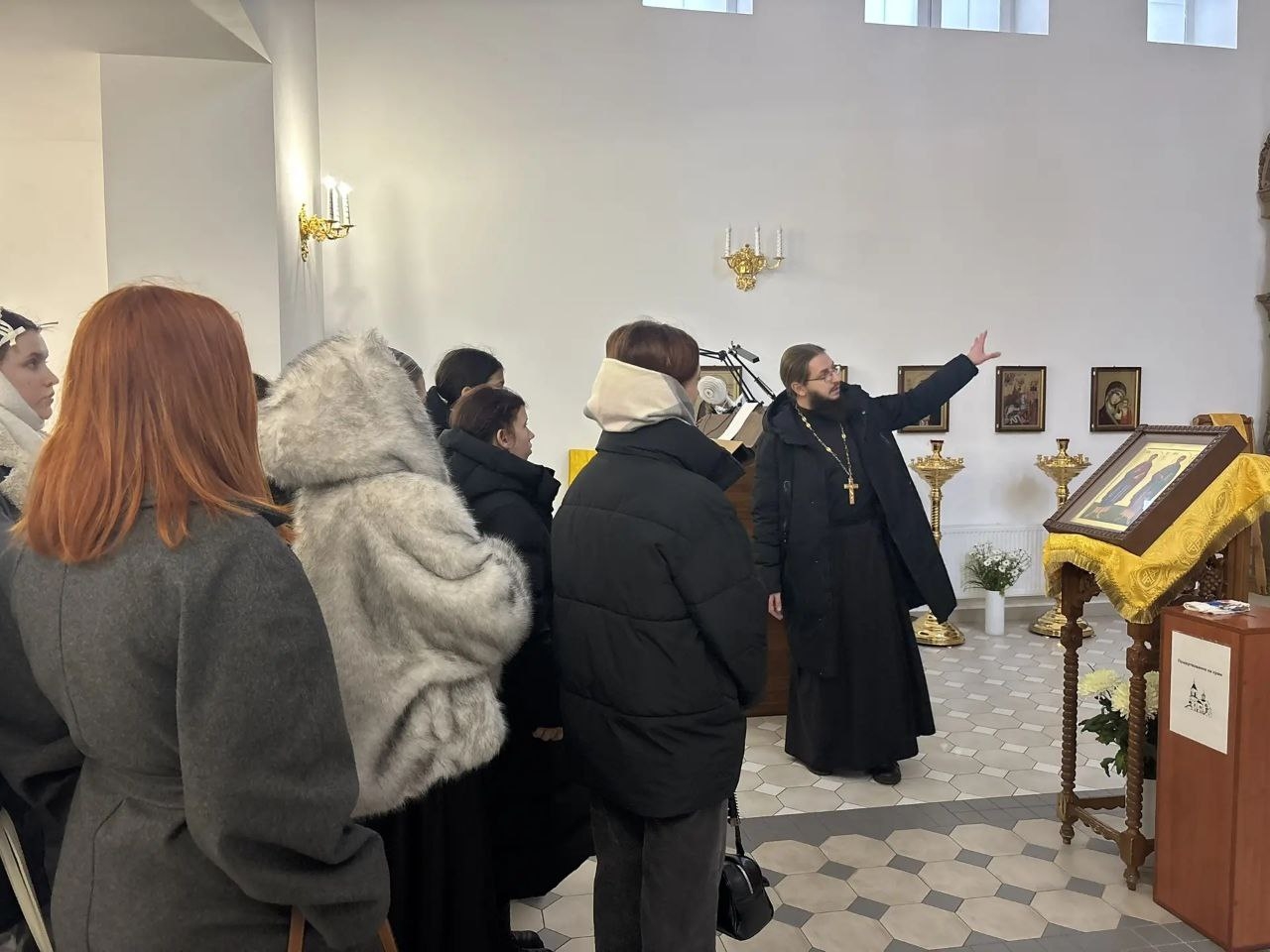 Руководитель епархиального отдела религиозного образования и катехизации, настоятель храма священник Стахий Сахаров провел экскурсию по храму и территории, рассказал об устройстве православного храма и иконах.