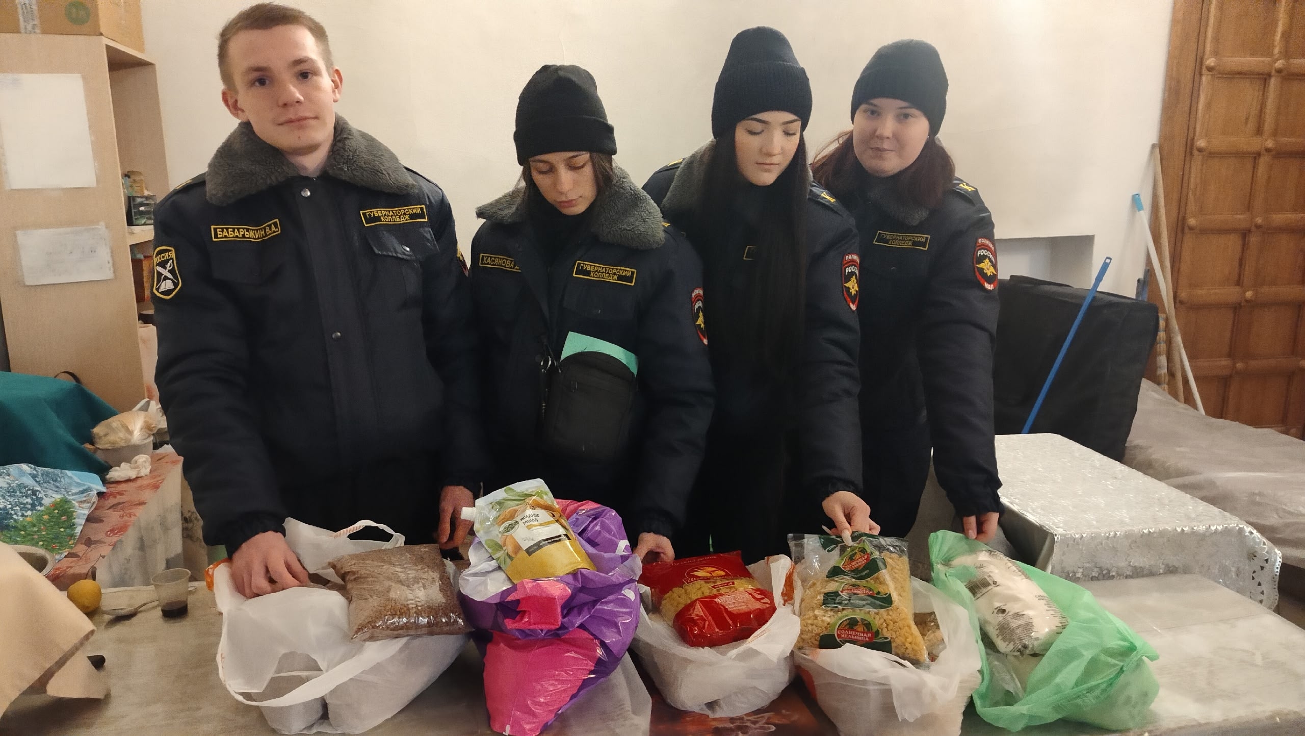 Студенты поблагодарили отца Амвросия за интересную экскурсию и передали продукты для нуждающихся людей в добровольческое общество «Добротолюбие» .