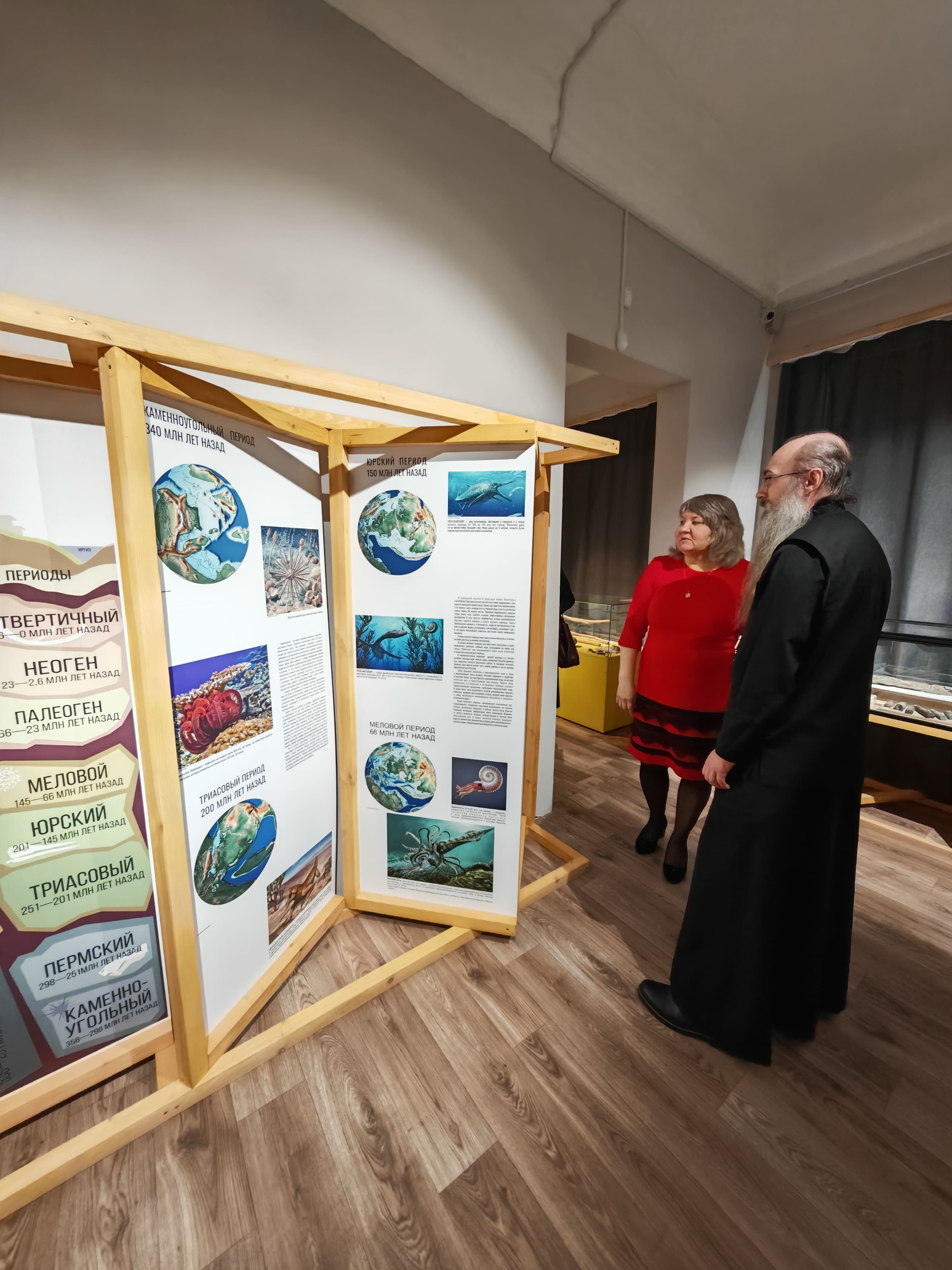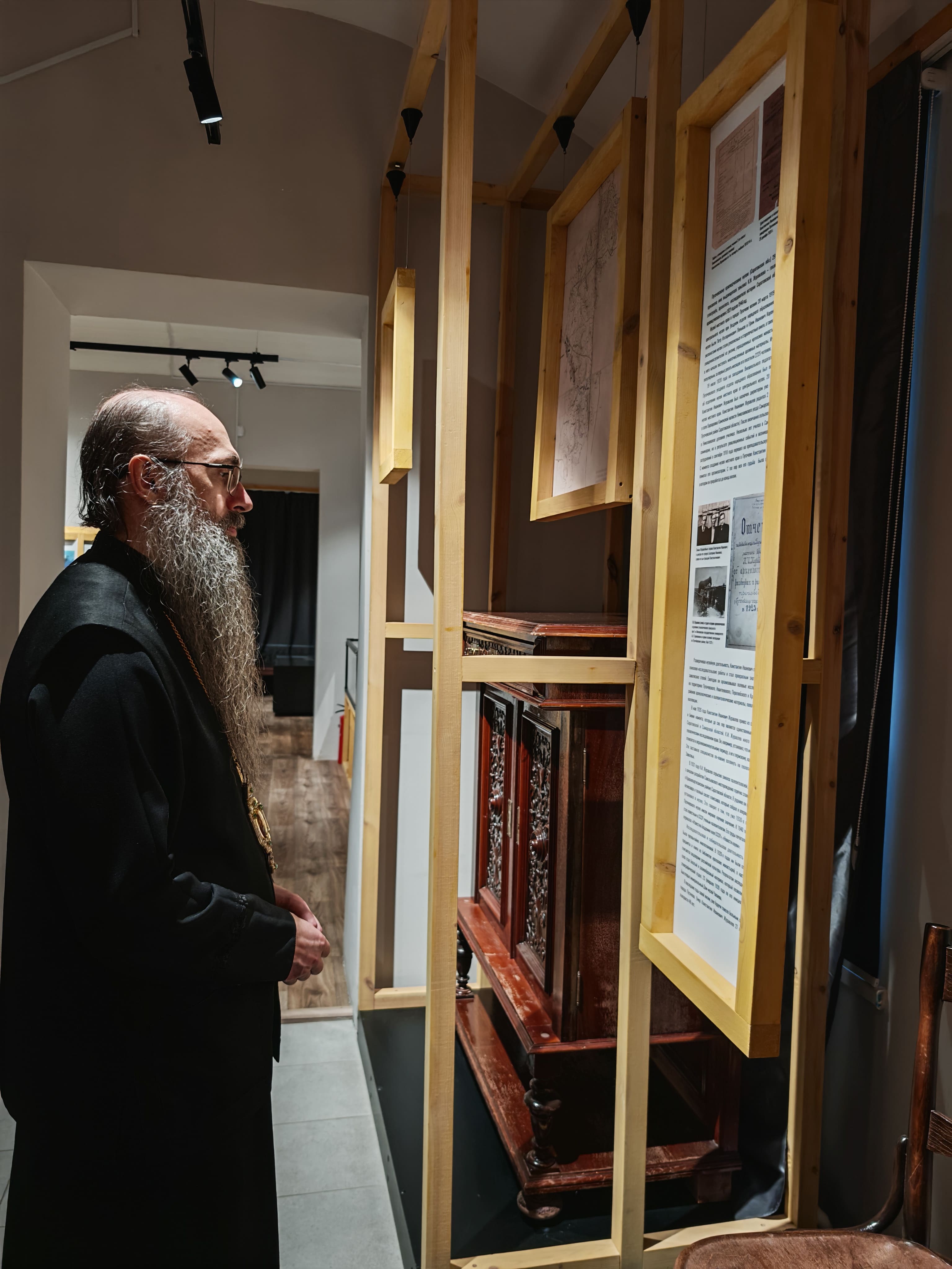 Епископ Иннокентий осмотрел залы постоянной экспозиции: зал палеонтологии, археологии, природы, истории старообрядчества, истории купечества и зал орденов и медалей.