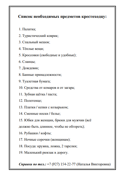 Прилагаем список необходимых предметов, которые нужно взять с собой и маршрут крестного хода: