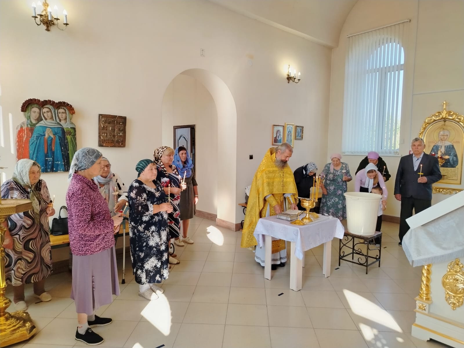 В субботу, 16 августа, после Божественной литургии в Покровском храме его настоятель протоиерей Владимир Растопшин совершил водосвятный молебен и освятил отреставрированную икону Рождества Христова.